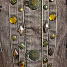 Charming 3/4 sleeve jean jacket with collar beading