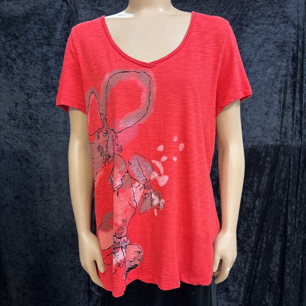 st johns bay Large Flower Women's Shirts Extra Large Red
