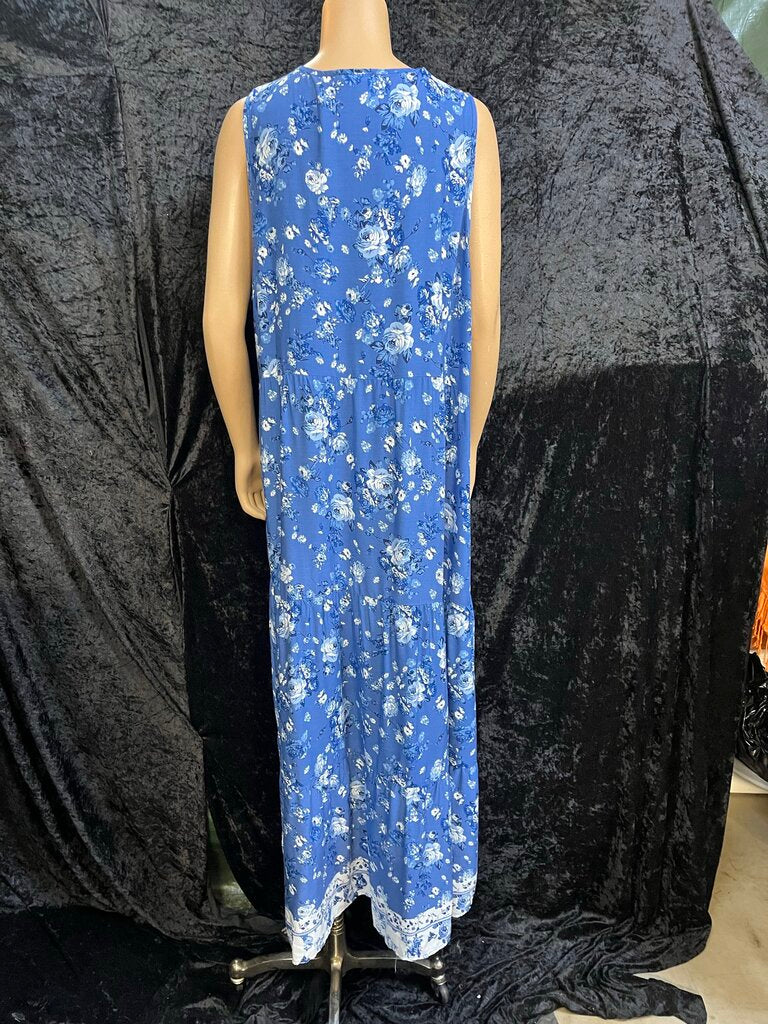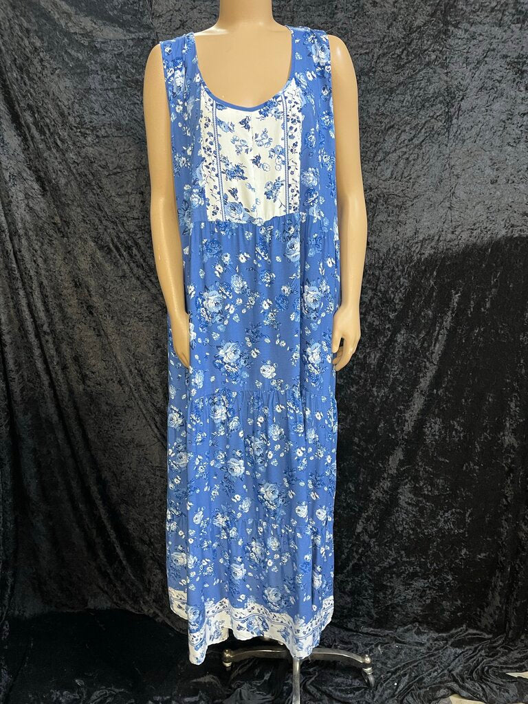 Suzanne betro 100% rayon sleeveless roses maxi Women's Dresses 3X blue white
