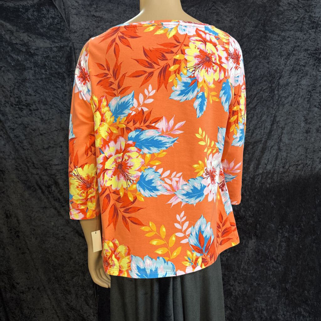 talbots 3/4 Sleeve Floral Women's Shirts 2X Petite Orange/Multi
