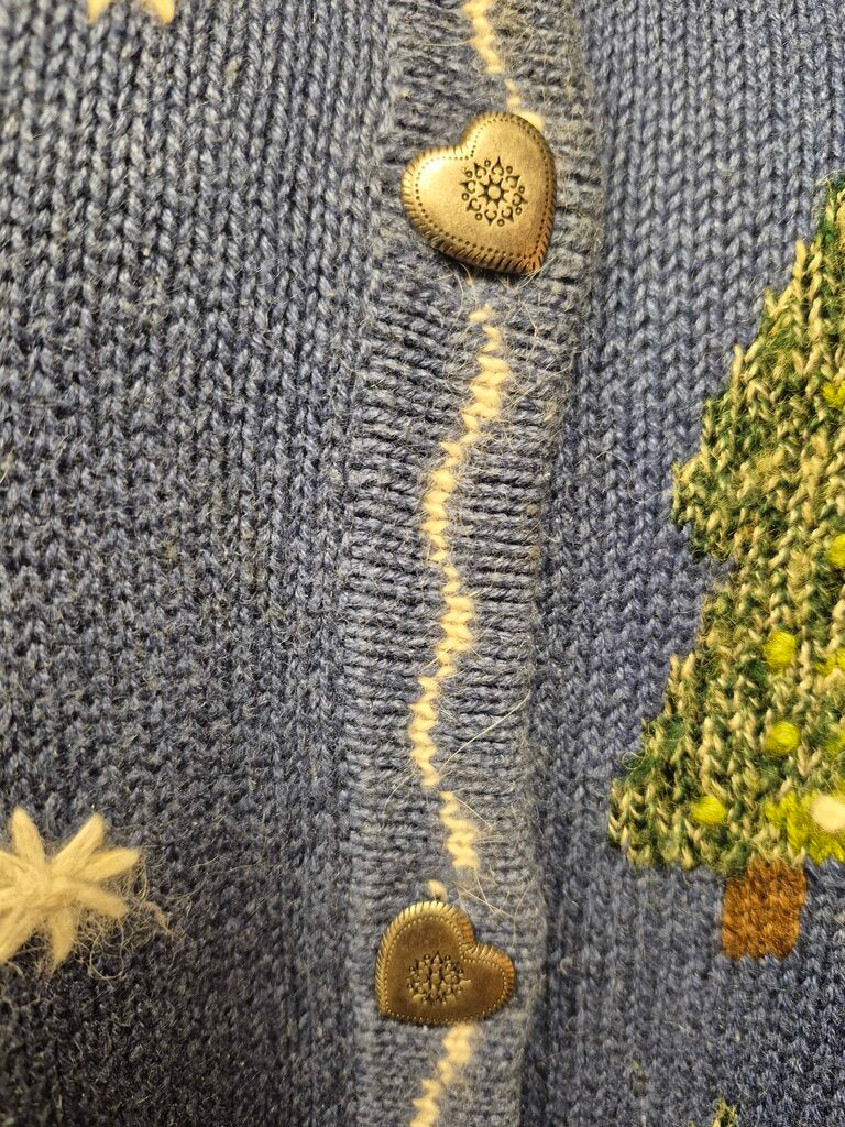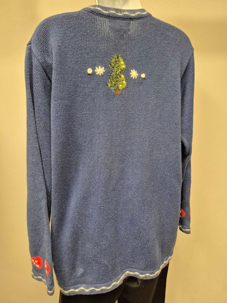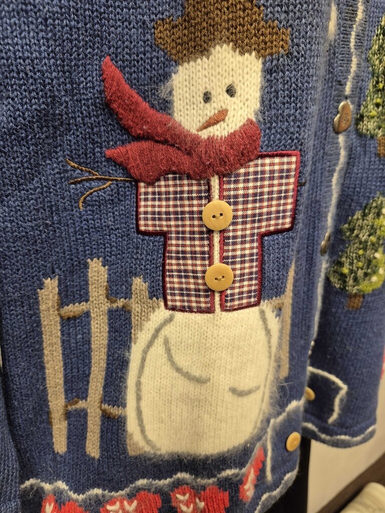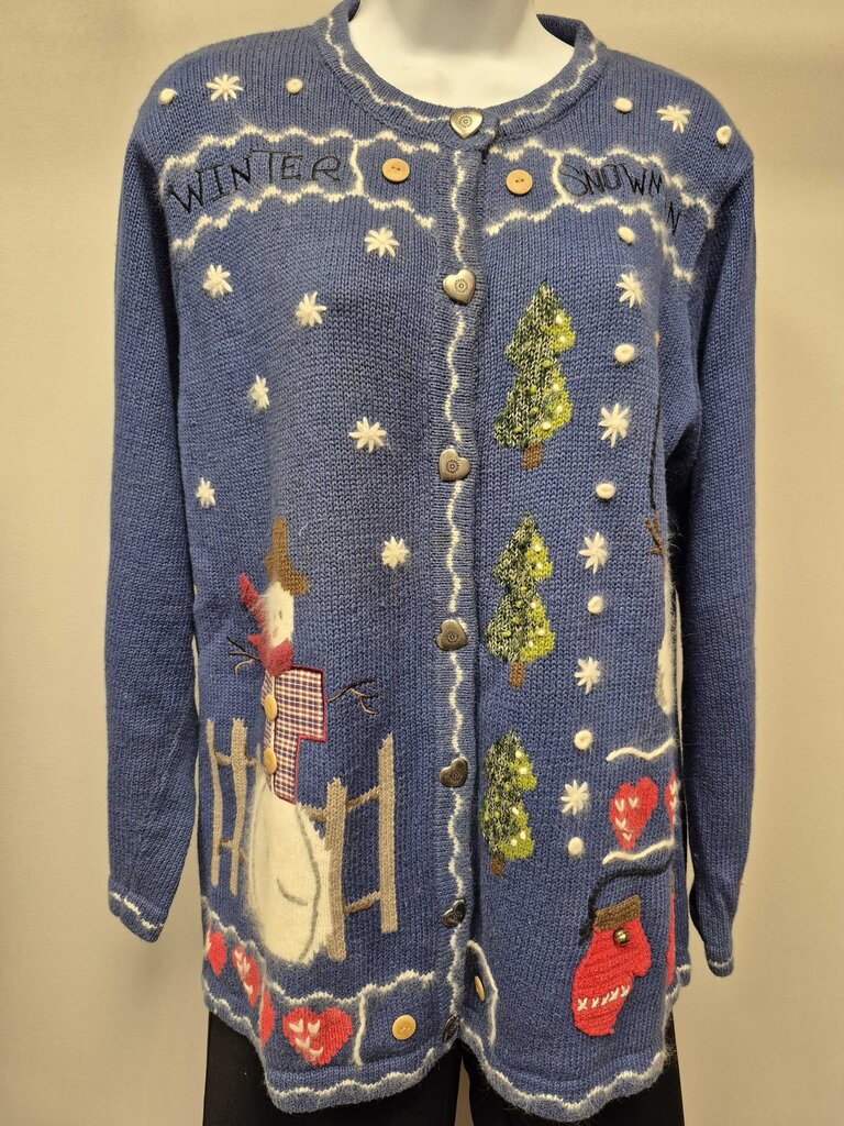 the quacker factory Blue Button up w Snowman Print Women's Sweaters M Blue