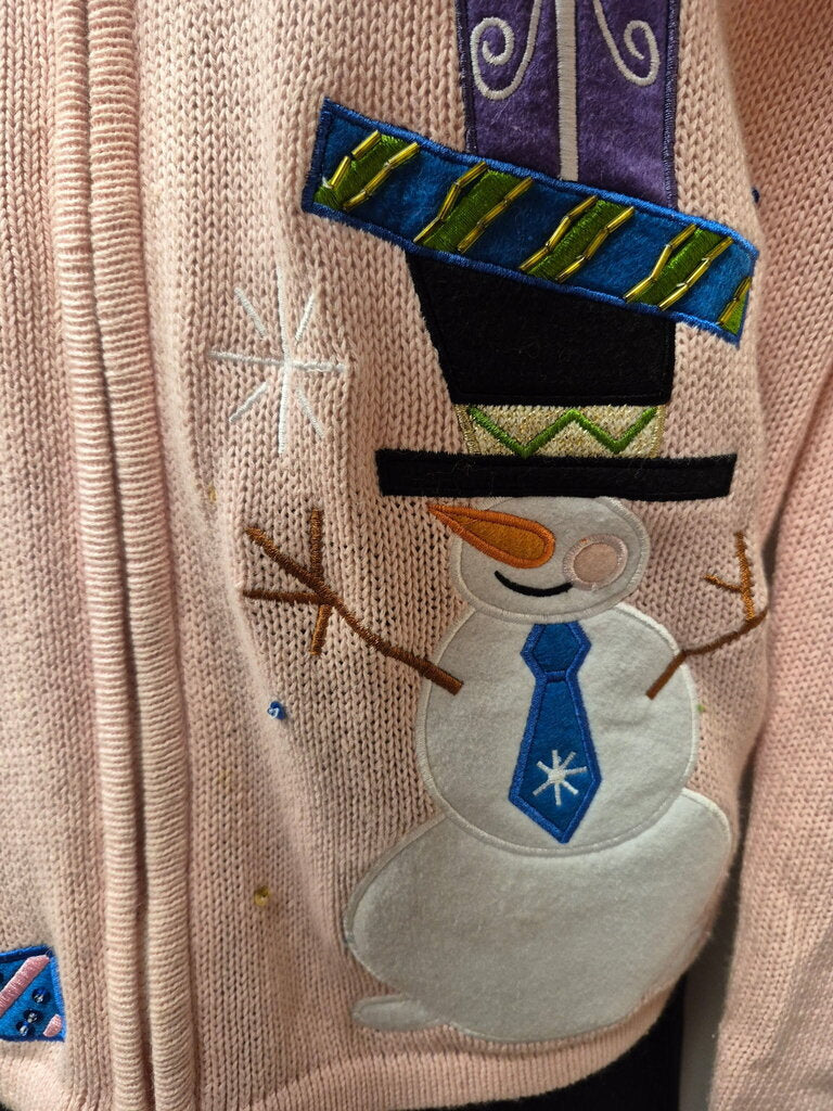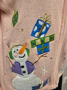 tiara international Pink Sweater Multicolored Snowman Design Women's Sweaters S pink