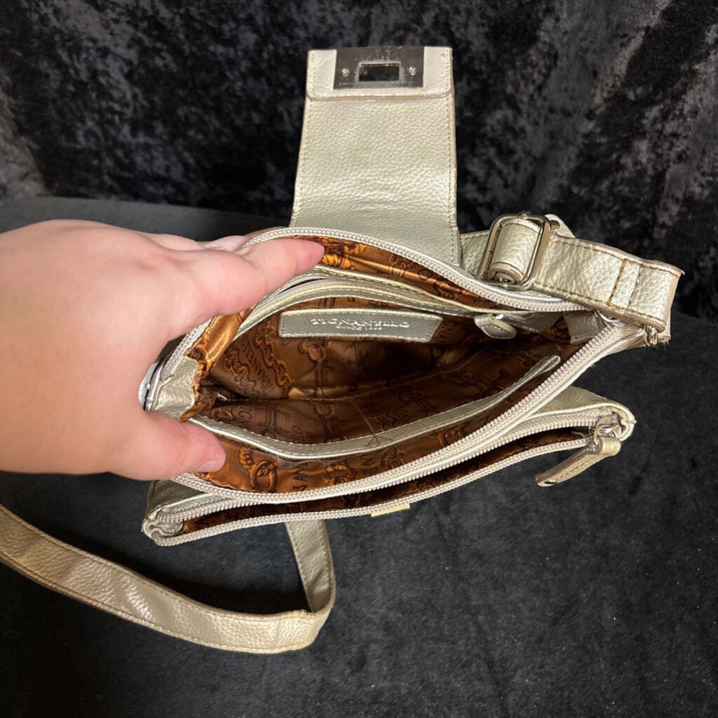 tignanello Tignanello Gold Metallic Leather Crossbody Women's Handbag Gold