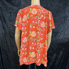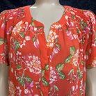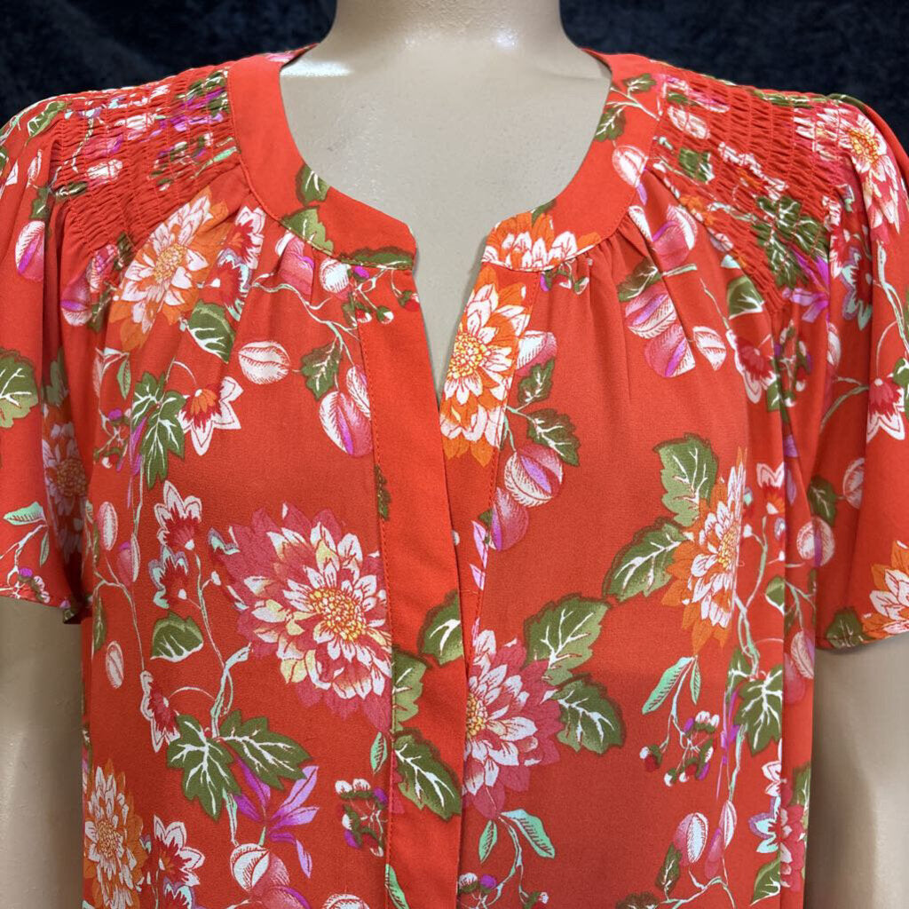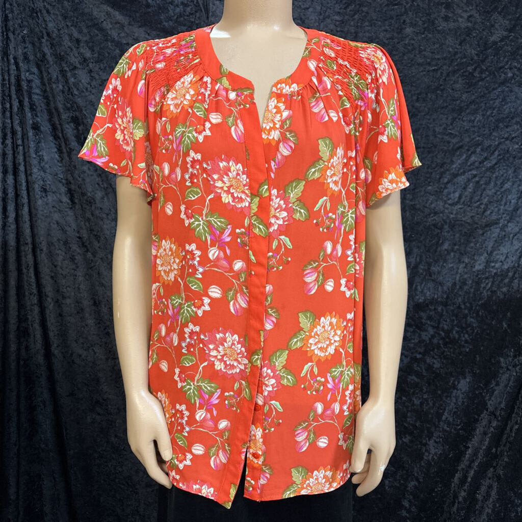 vila milano gathered shoulder ruffled sleeve flowered Women's Shirts 1X orange, green, white