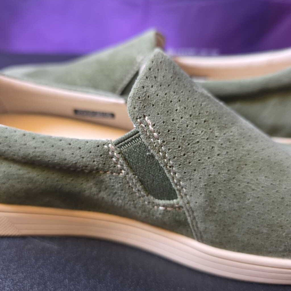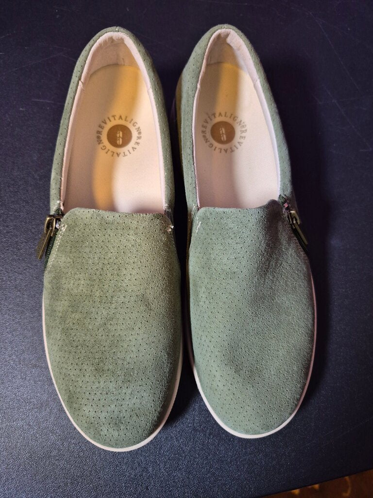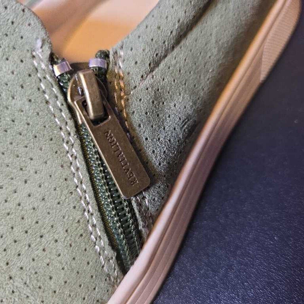 These Vitalio green suede slip-on shoes feature a stylish and comfortable design, perfect for casual outings. Made with soft suede and a convenient zip closure.