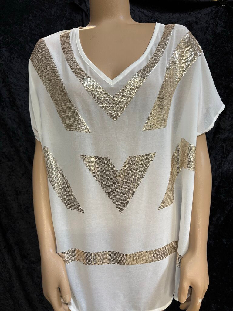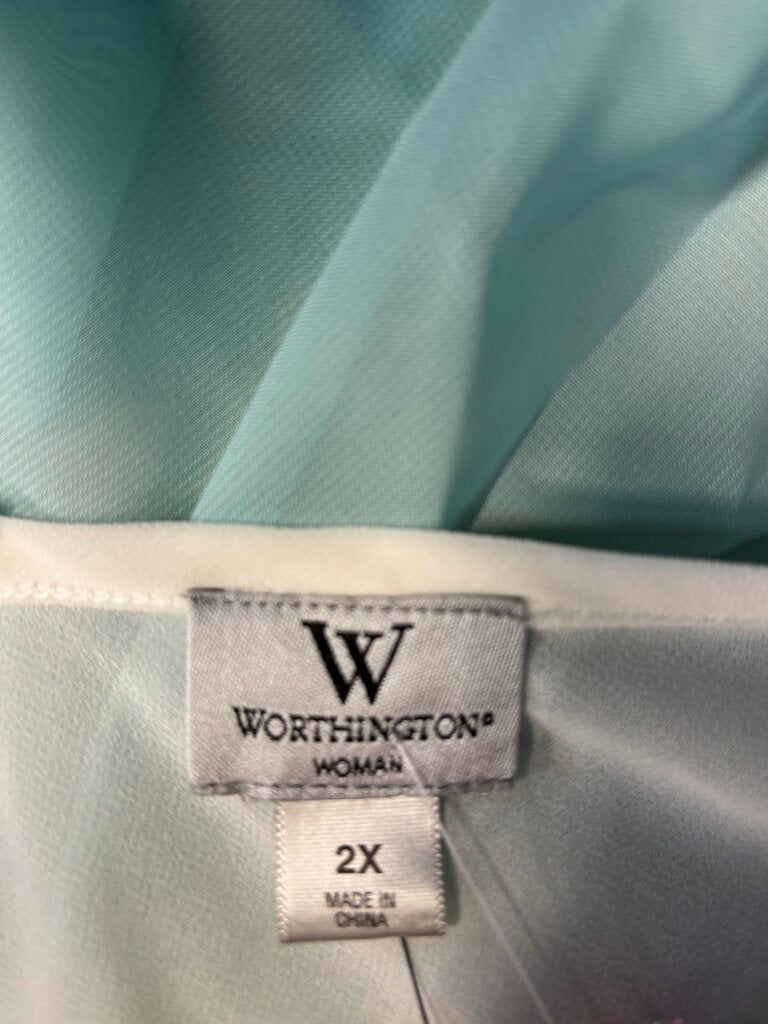 worhtington Sequined Sheer TShirt Women's Shirts 2x White/Gold