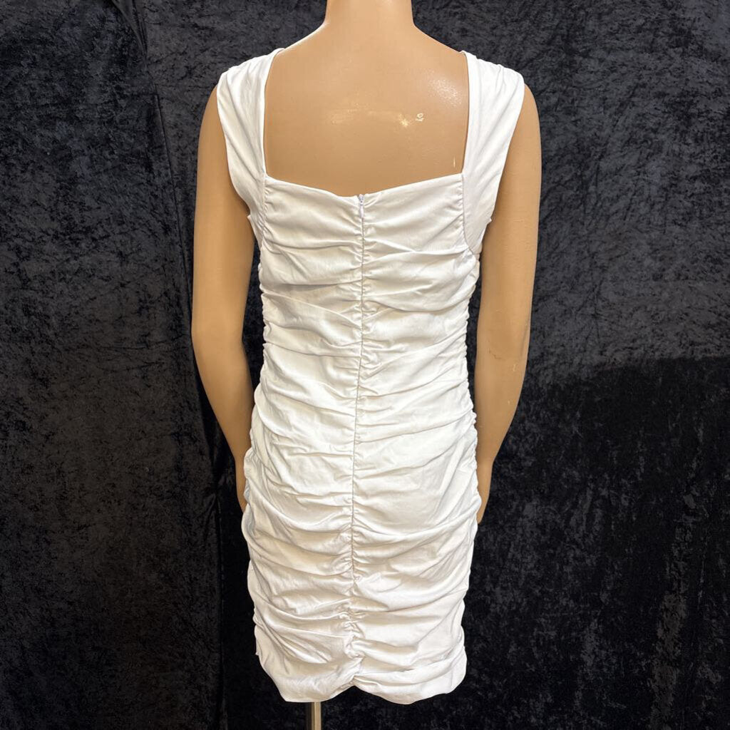 venus Square Neckline Gathered Fabric Sides Women's Dresses 10 White