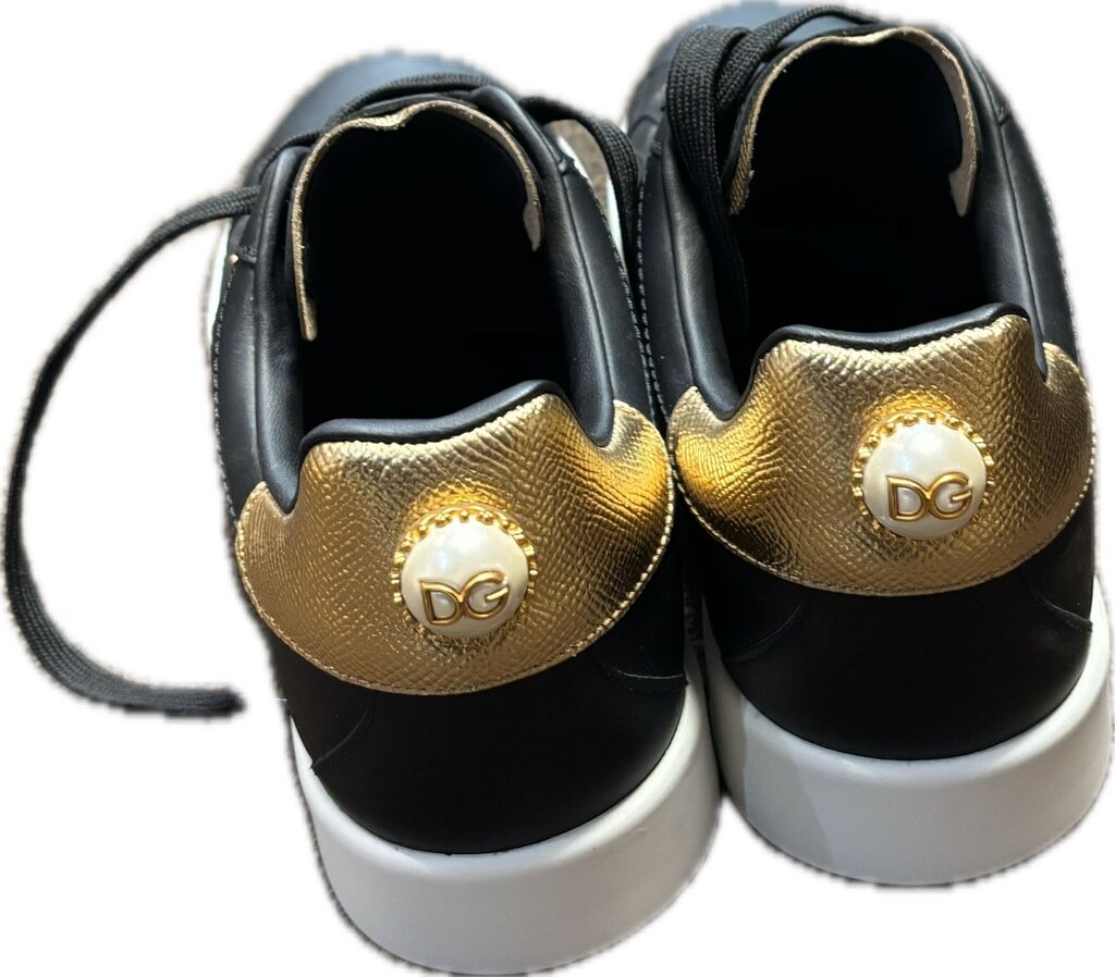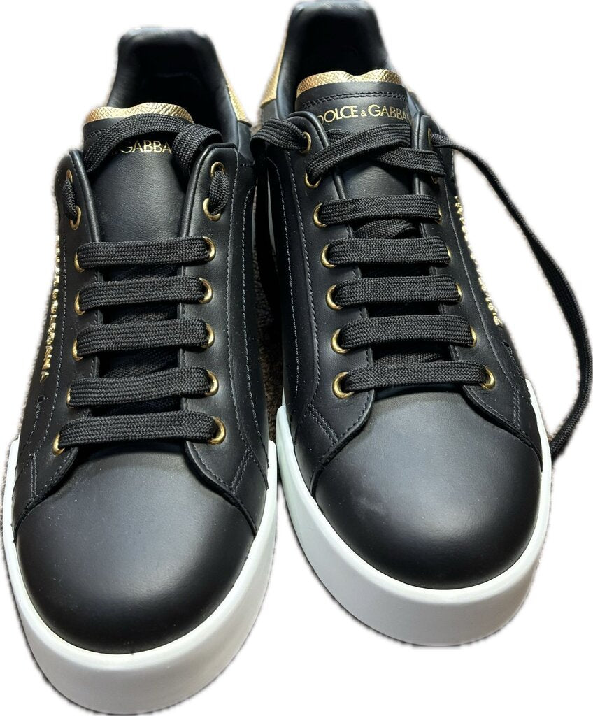 Dolce & Gabbana Calfskin Napa Portofino Sneakers Women's Designer Footwear 9.5 Black/Gold