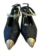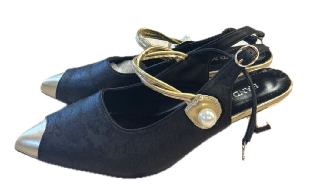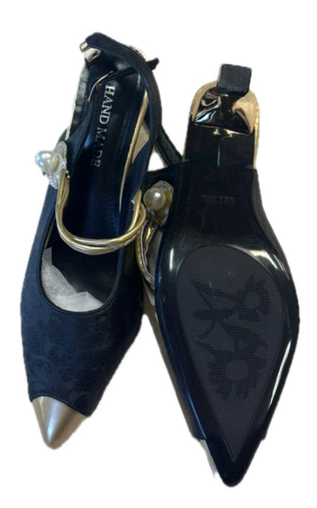 handmade Floral design with gold and pearls pointed toe Women's Shoes 7.5/8 Black