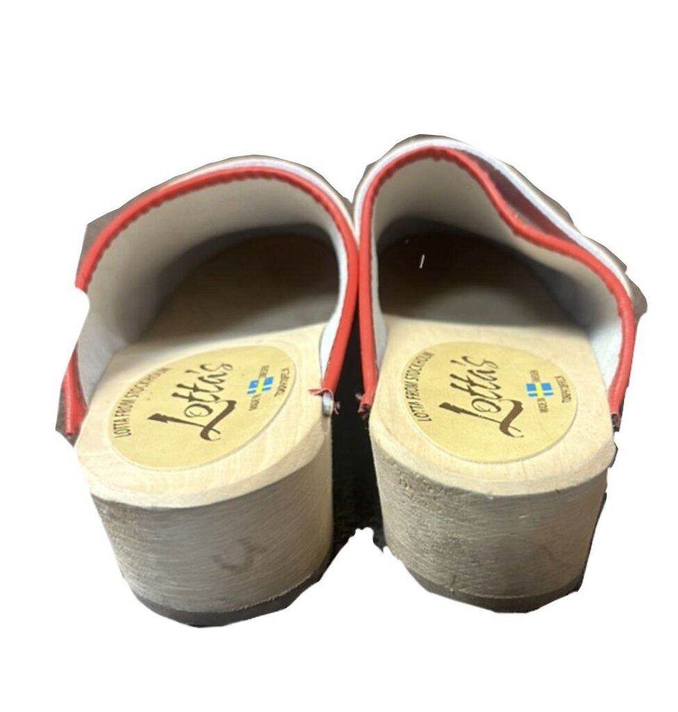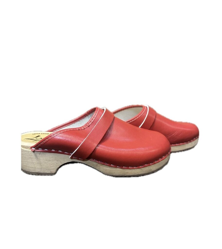 A pair of stylish red Lotta clogs from Stockholm, perfect for casual wear. Crafted with quality materials and designed for comfort. Ideal for women who appreciate both fashion and functionality.