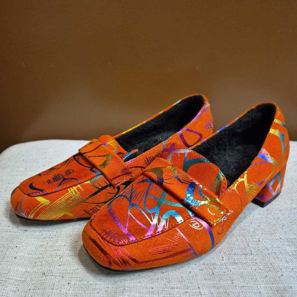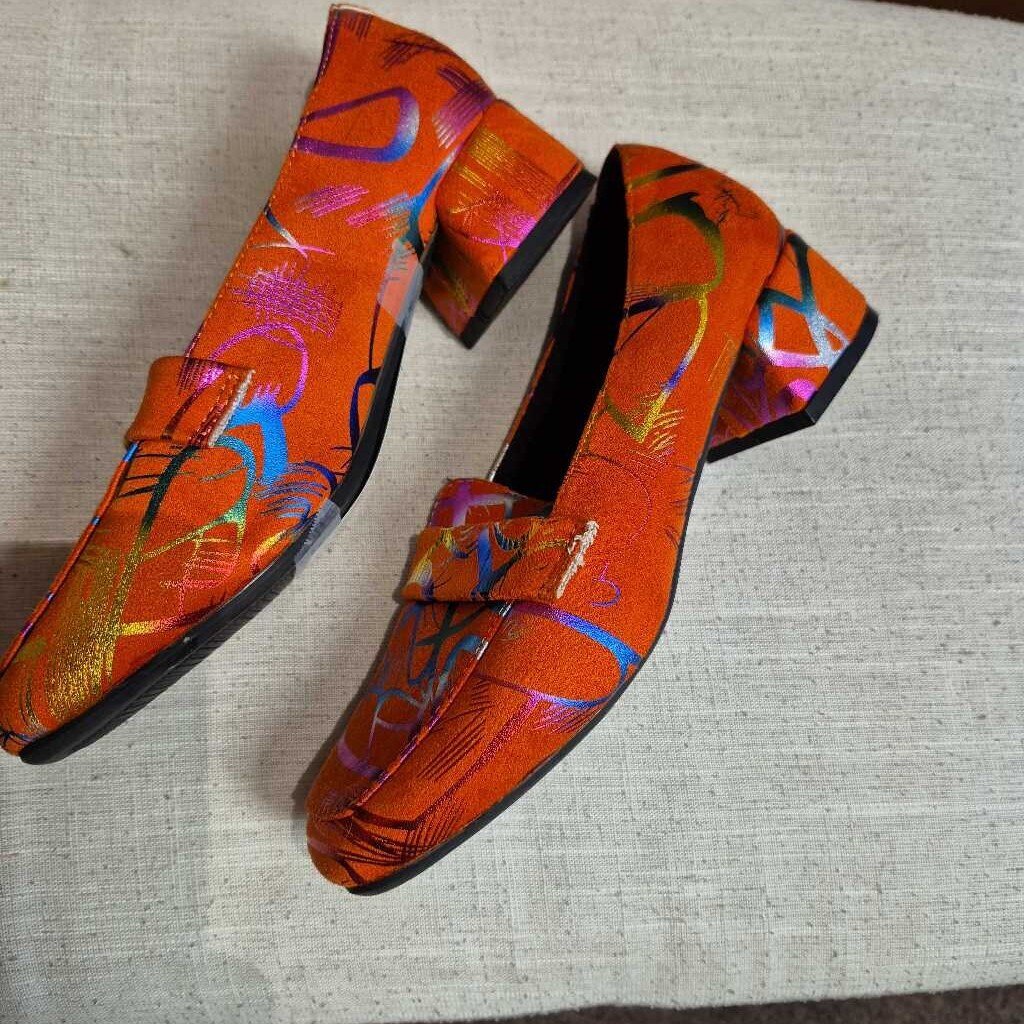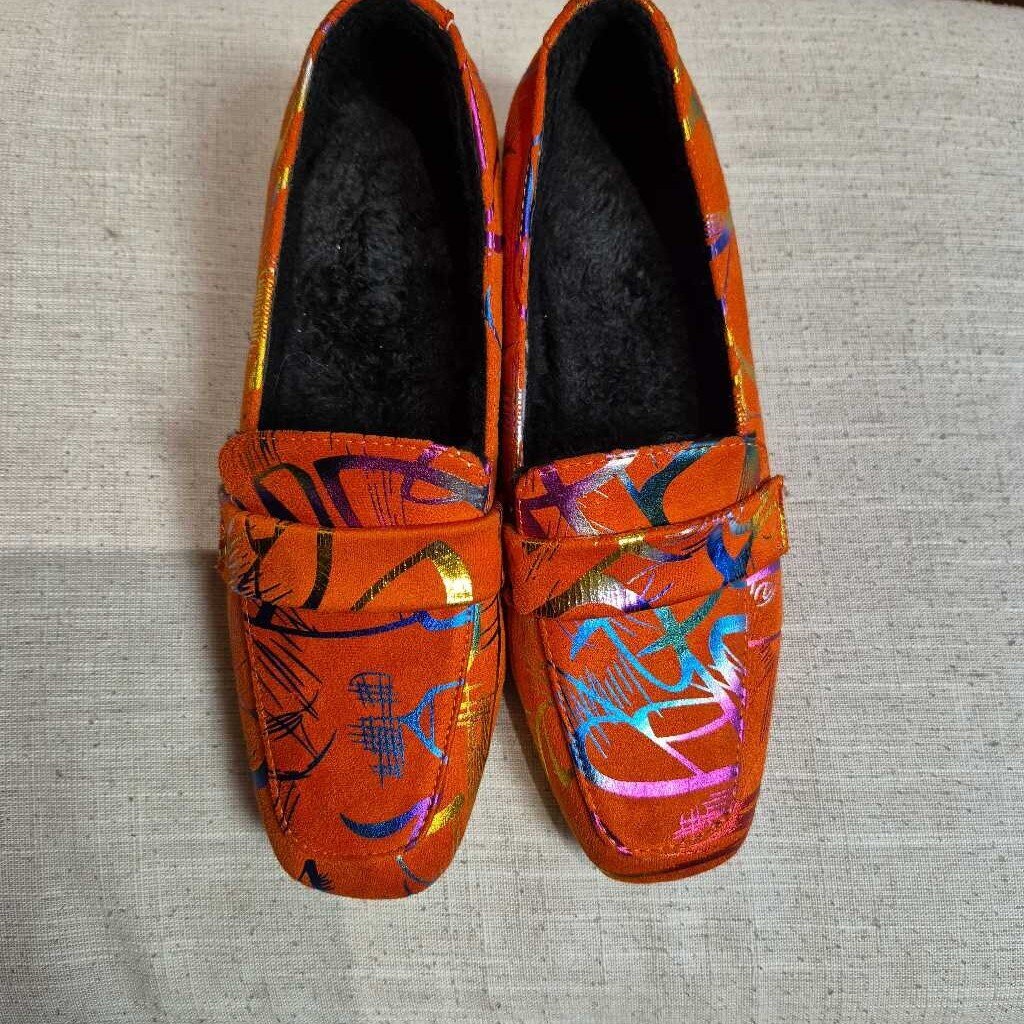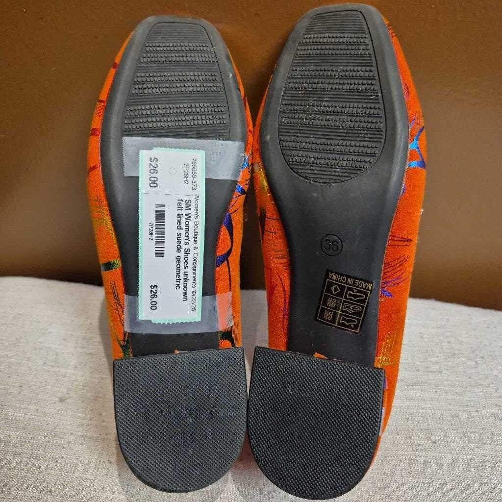 unknown felt lined suede geometric design Women's Shoes 6 orange