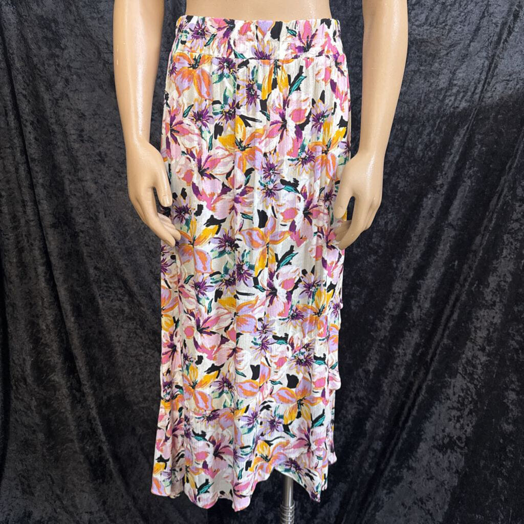 AGB Long flowered skirt with elastic waist Women's Skirts L White, black, pink, purple, green