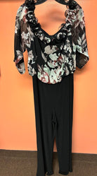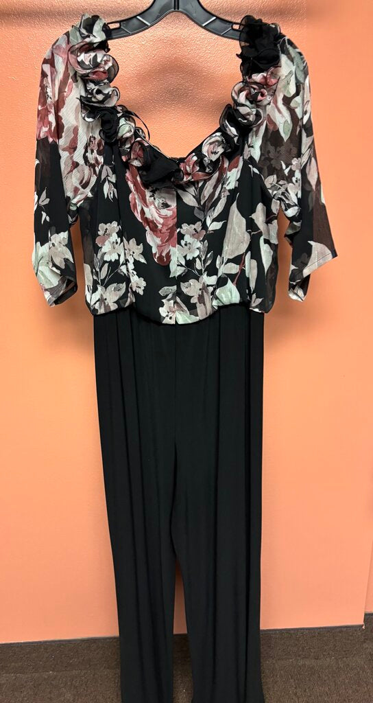 adrianna papell Floral Print Ruffle Neckline Women's Rompers & Jumpsuits 14W Black/Pink