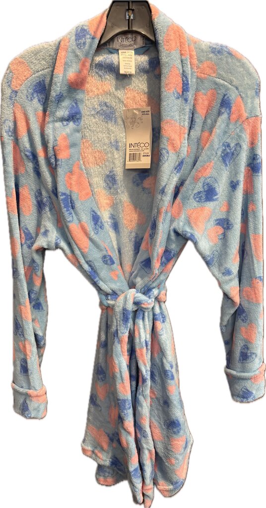 inteco Plush Robe with Heart Pattern Women's Sleep Attire one size blue pink