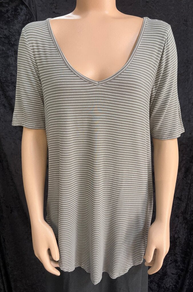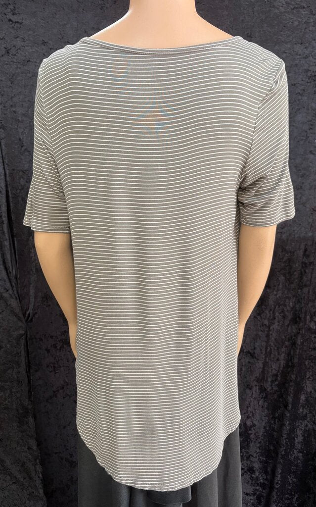 24/7 Women's Striped Short Sleeve Top Women's Shirts medium army green