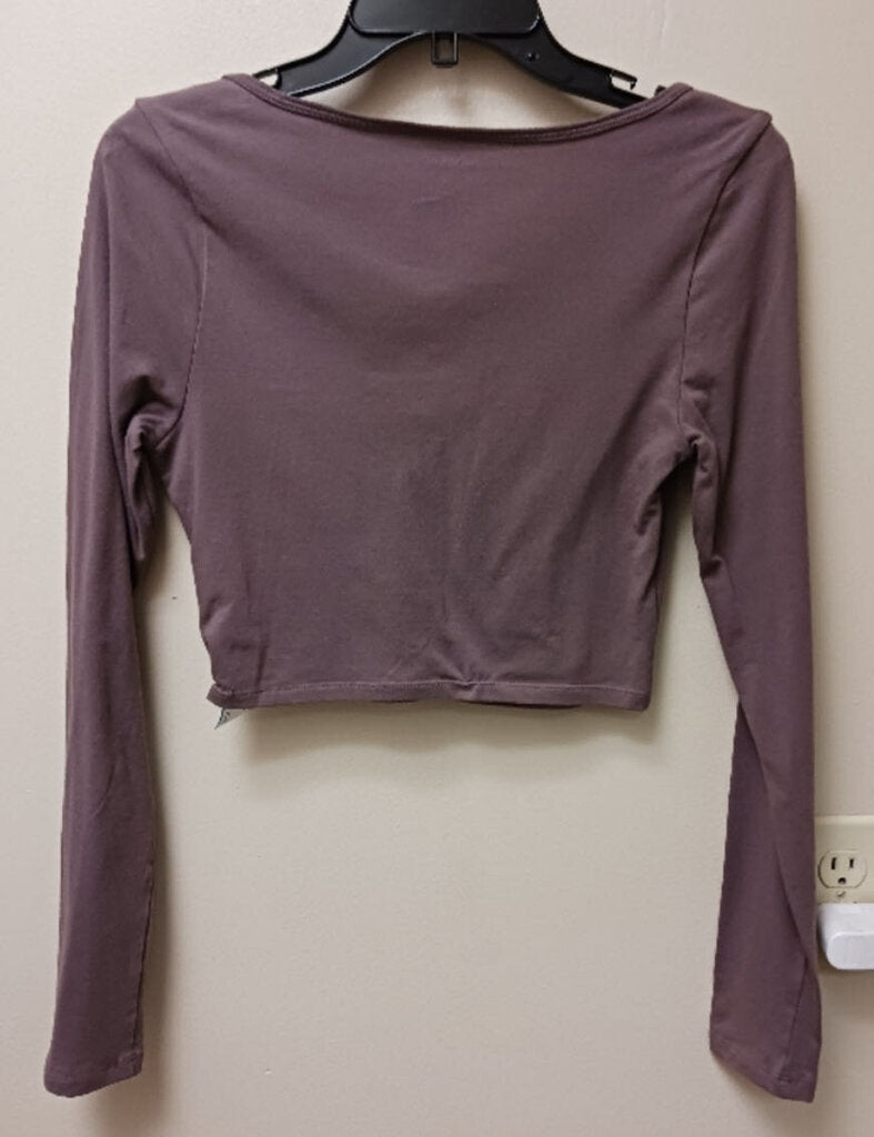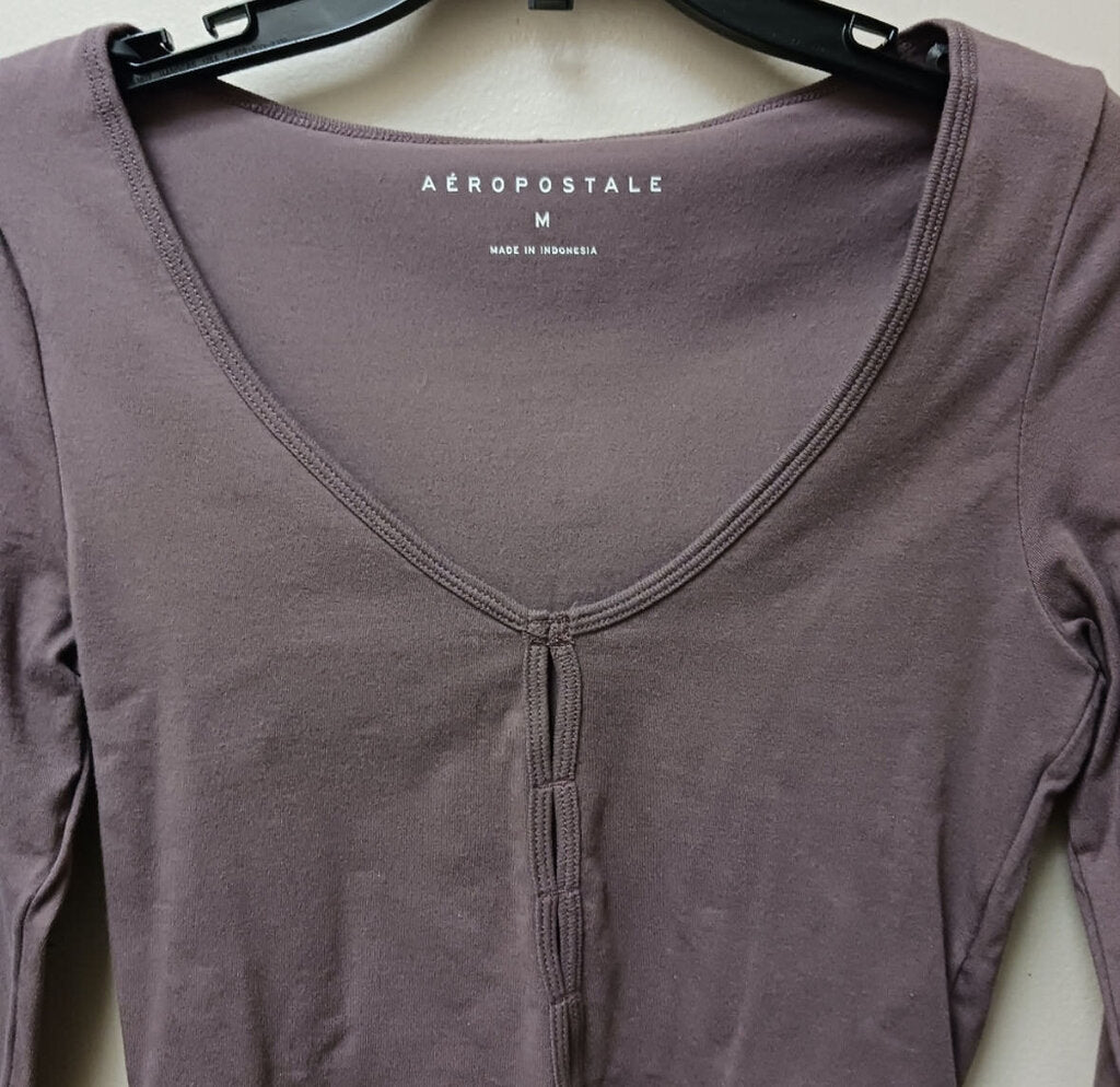 Aeropostale Cropped long sleeve v-neck Women's Shirts Med brown