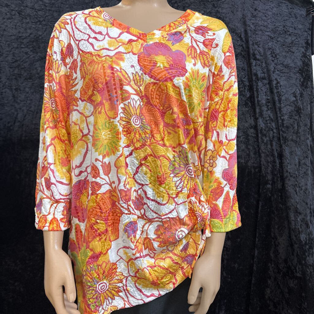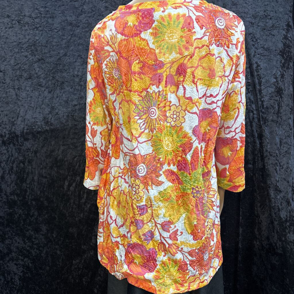 ali miles Flower Print Front Pocket Women's Shirts Medium Yellow/Orange