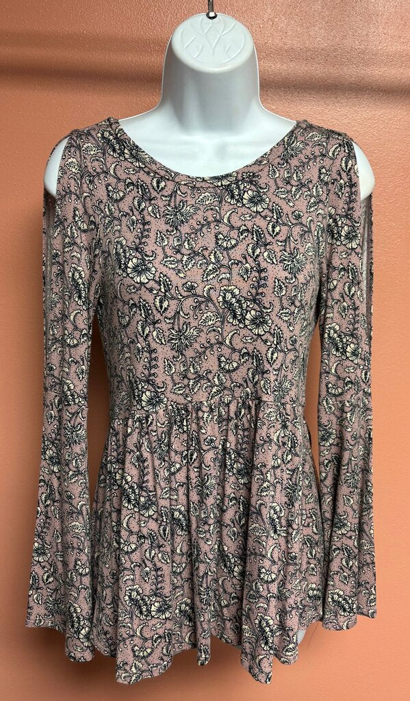 American Eagle Floral Print Bell Sleeve Top Women's Shirts small lilac/black