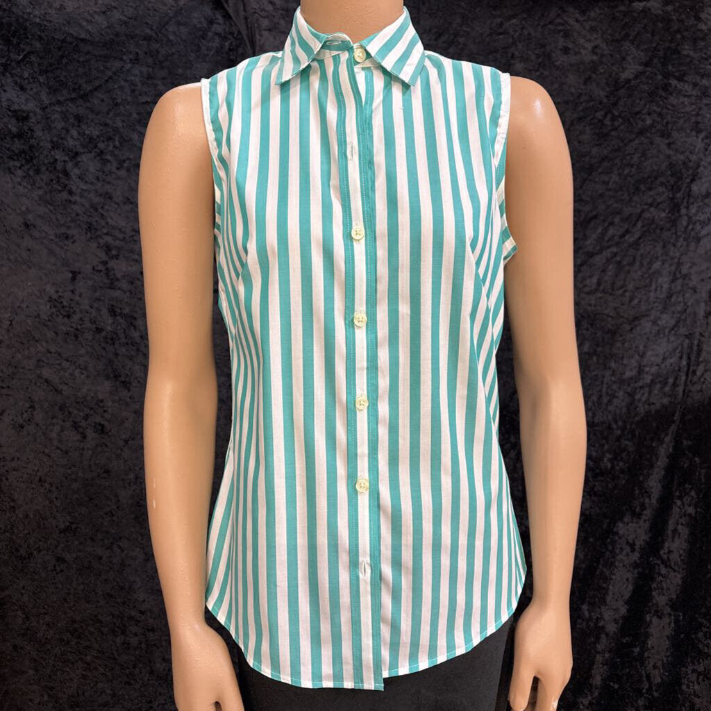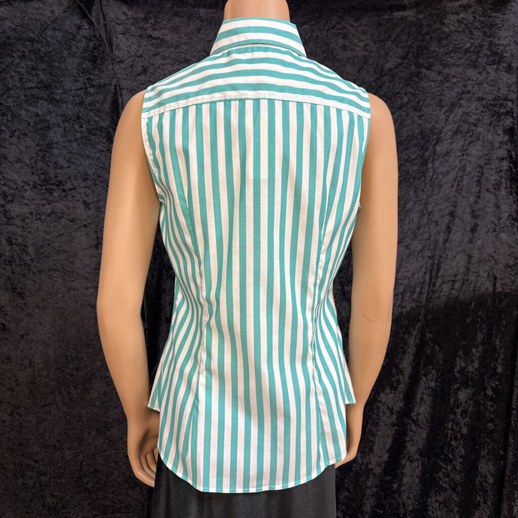 Banana Republic Sleeveless striped blouse Women's Shirts 8 Petite Teal & white