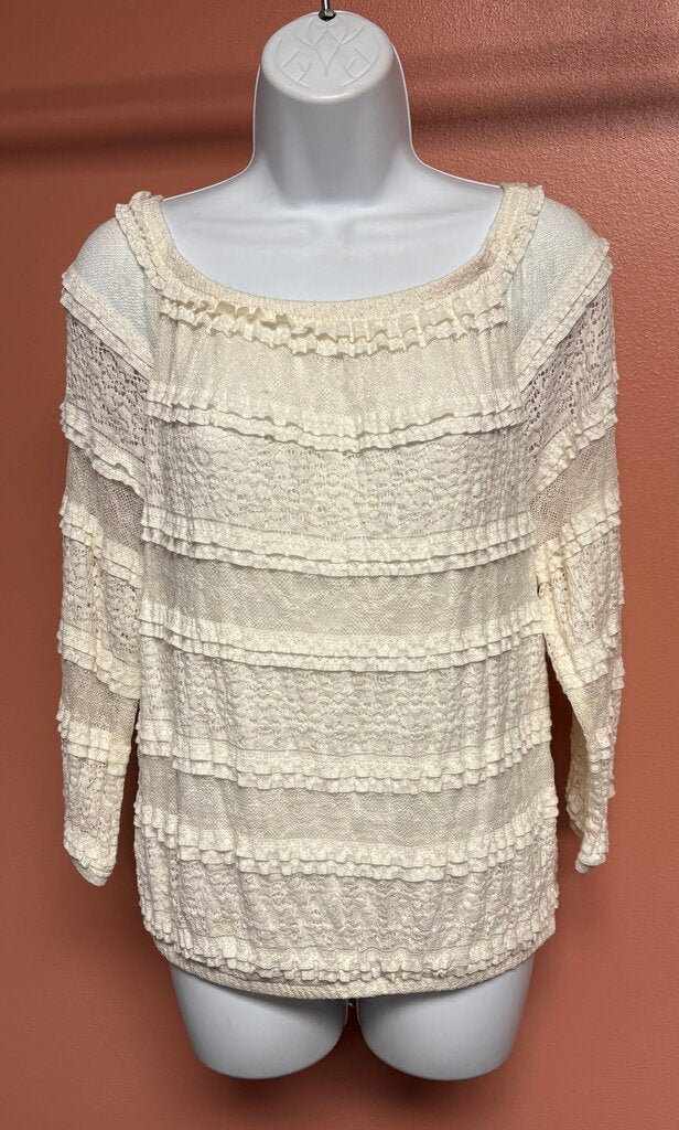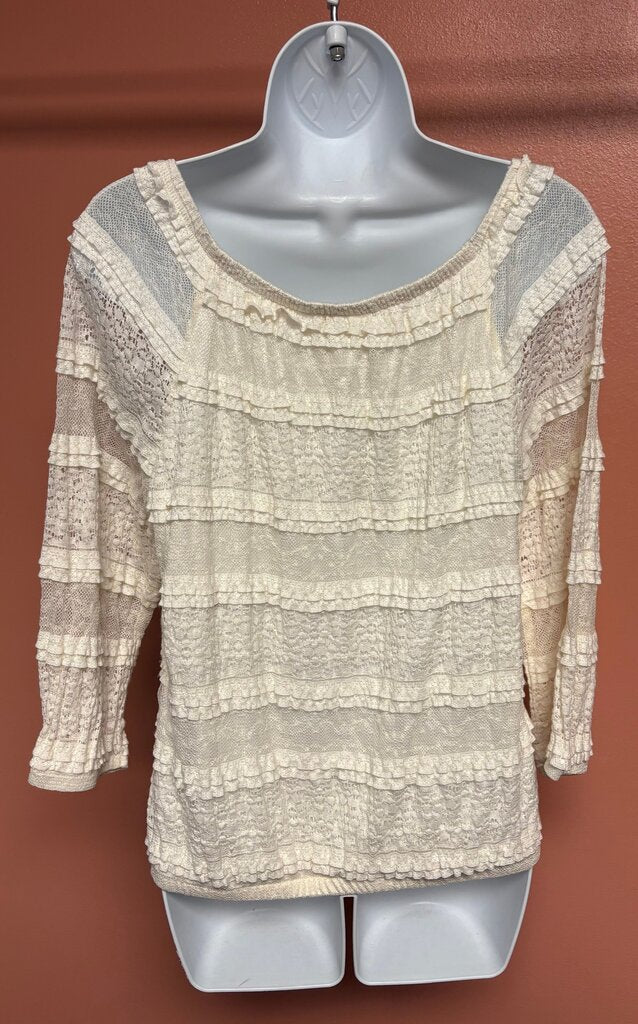 Candie's Cream Ruffle Top Women's Shirts medium cream