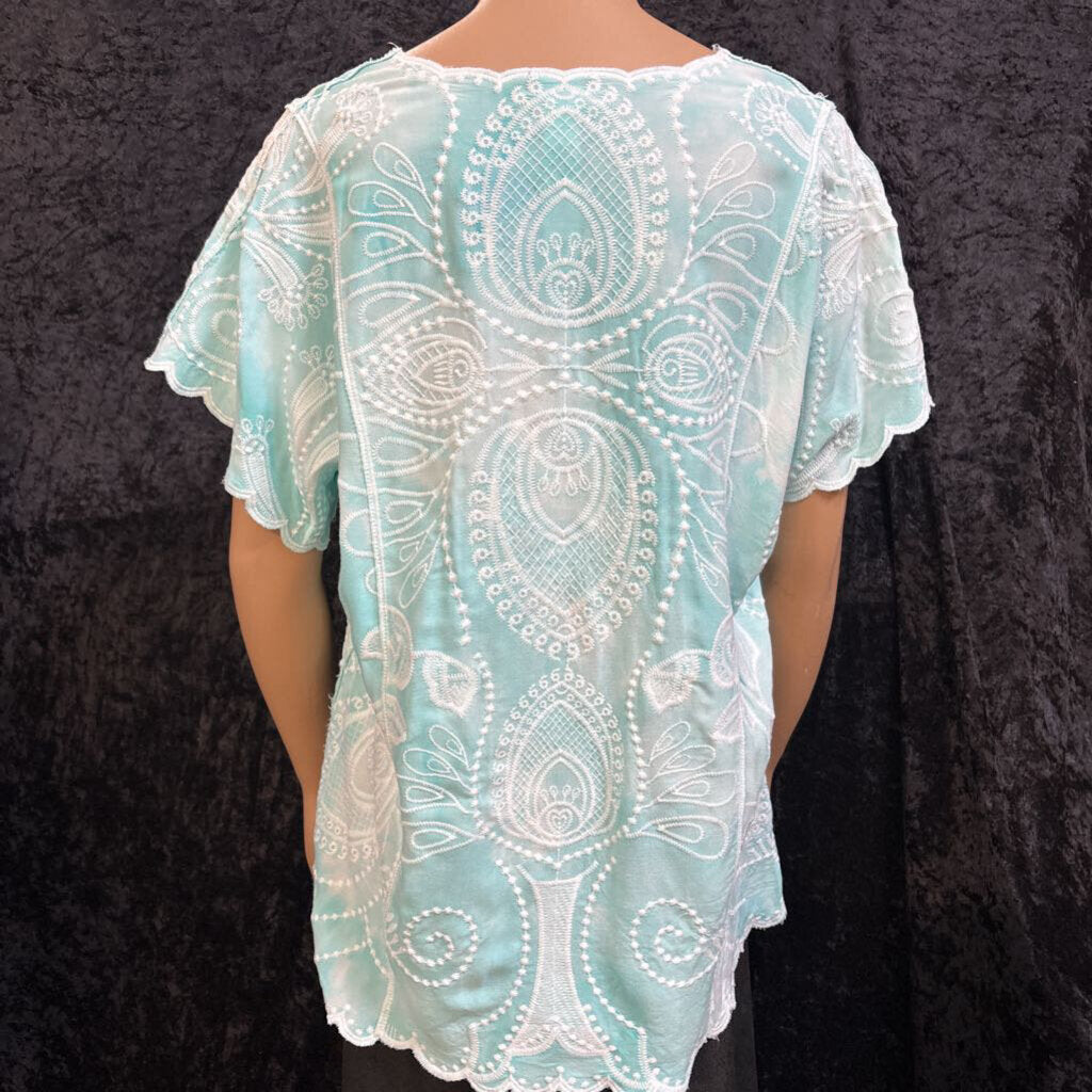chicos Embroidered Pattern Women's Shirts Extra Large Teal/White