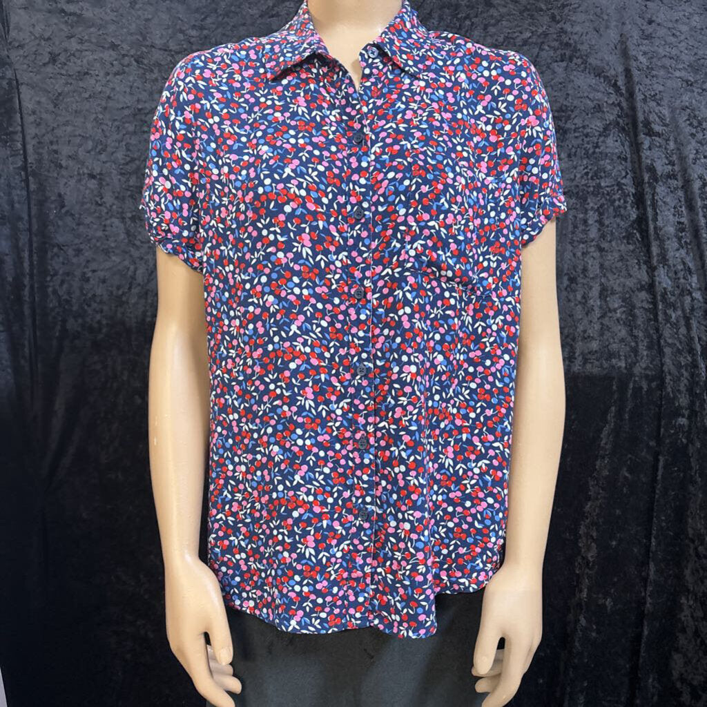 Croft & Barrow Flower Button Down Women's Shirts Small Navy/Red