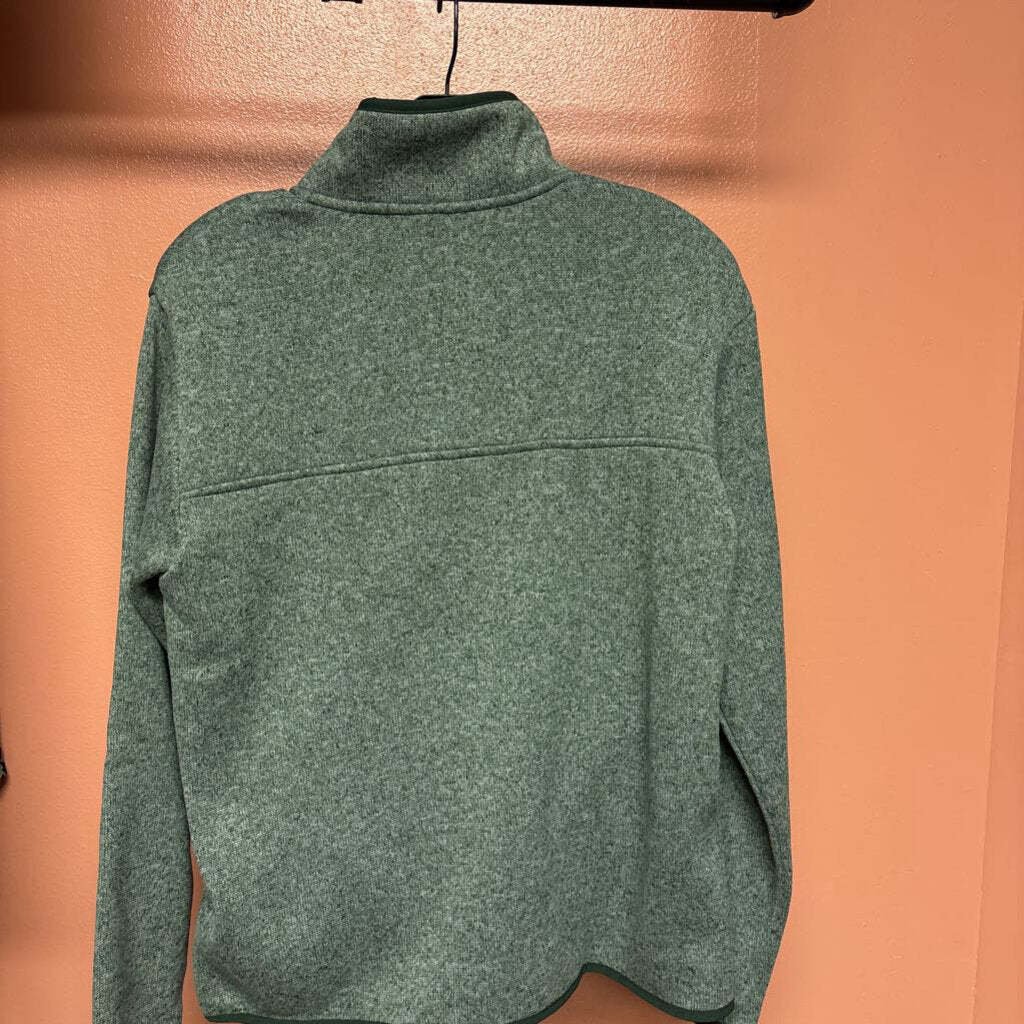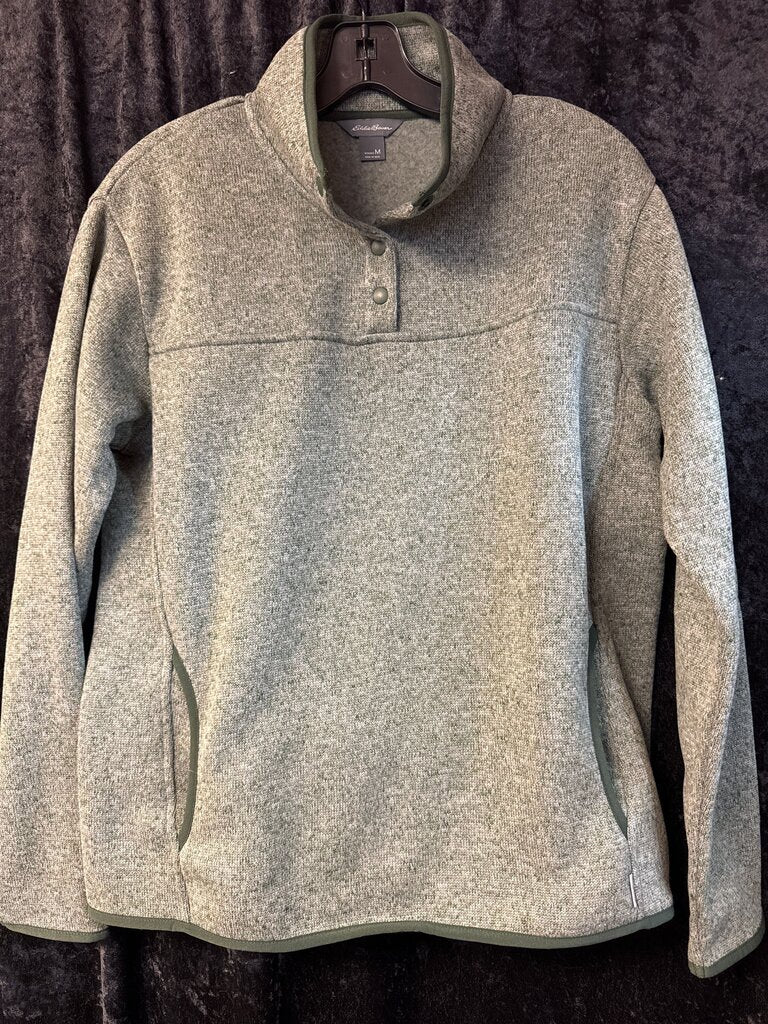 A cozy and stylish green fleece pullover from Eddie Bauer. Perfect for layering and keeping warm during the chilly seasons.