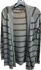 A stylish gray striped cardigan from Express, perfect for layering in any season.