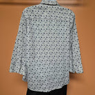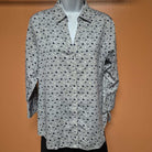 Fox Croft Geometric Pattern Button Down Women's Shirts 10 White/Navy