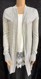A stylish gray long cardigan by Hippie Rose, perfect for layering and adding warmth to any outfit. Features a cozy knit fabric and versatile design.