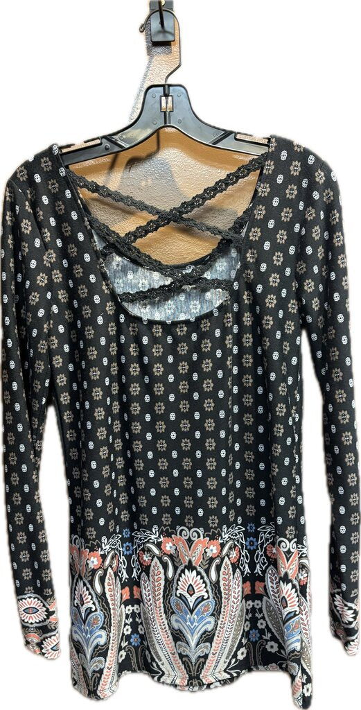 Jennifer Lopez Cut Out Neck Long Sleeve Women's Shirts Medium Brown/Pink