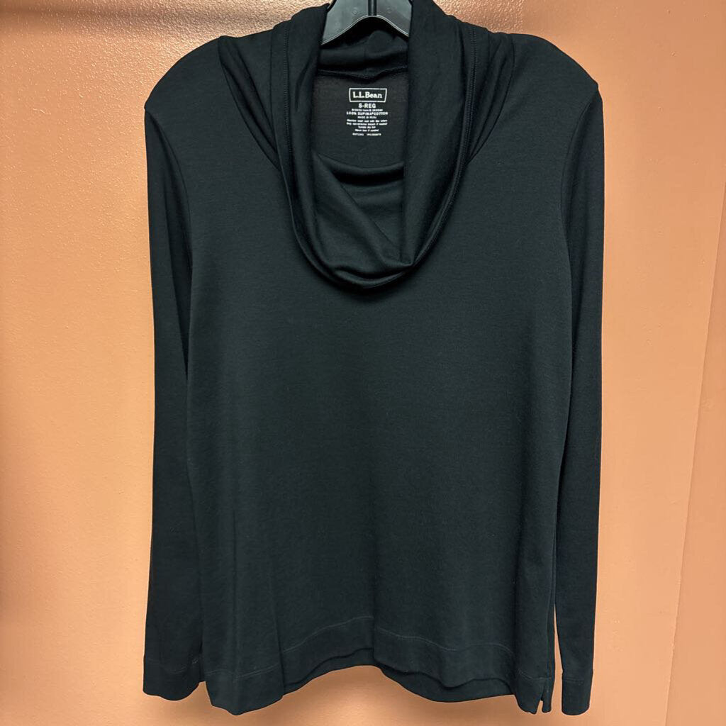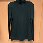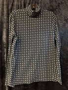 Elegant navy turtleneck top featuring a subtle floral pattern, perfect for layering during the colder months.
