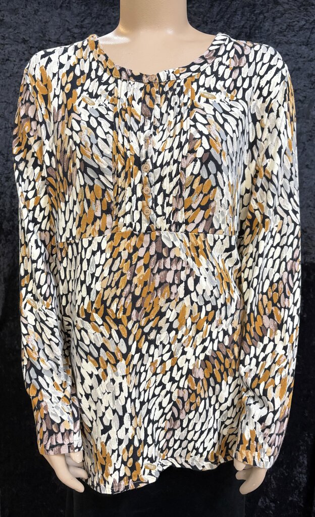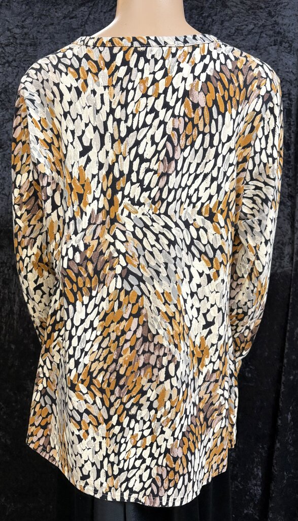 Liz Claiborne Button Front Flowy Tunic Women's Shirts L Tan/Orange