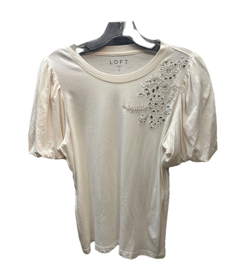 Stylish cream puff sleeve top by LOFT featuring decorative embellishments, perfect for casual or dressy occasions.