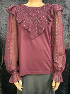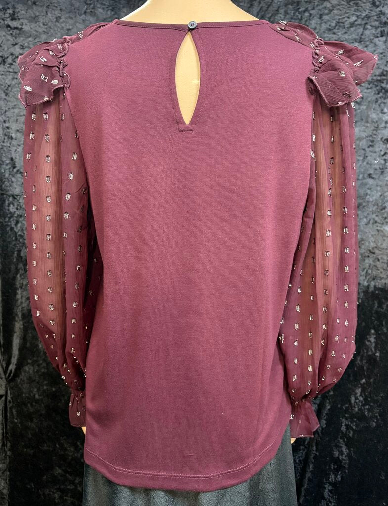 Loft Shimmer Dotted Ruffle Blouse Women's Shirts M Purple