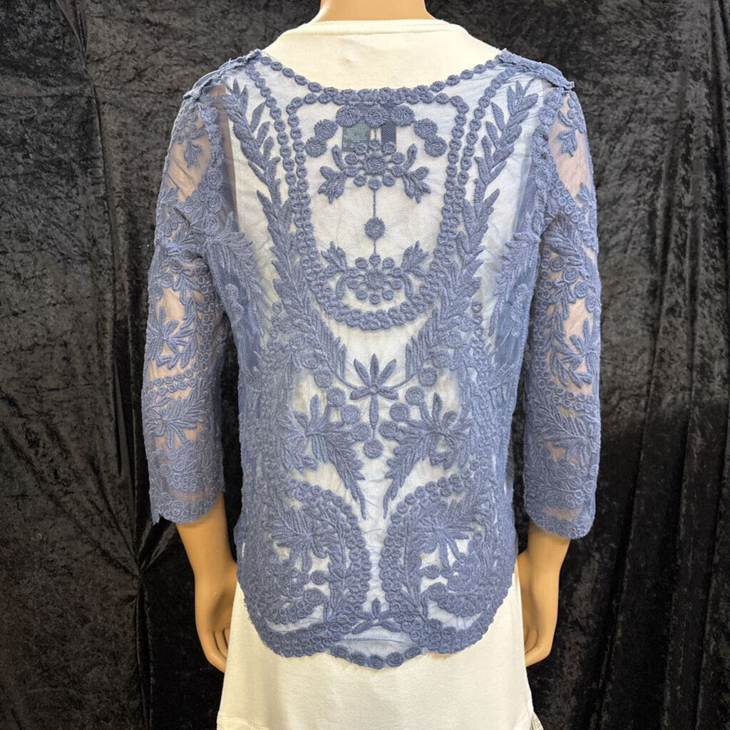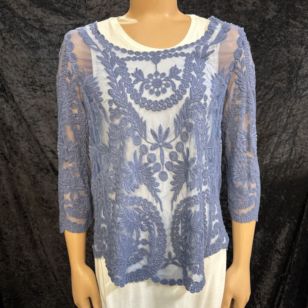 mascara 3/4 sleeve sheer lace Women's Shirts S blue