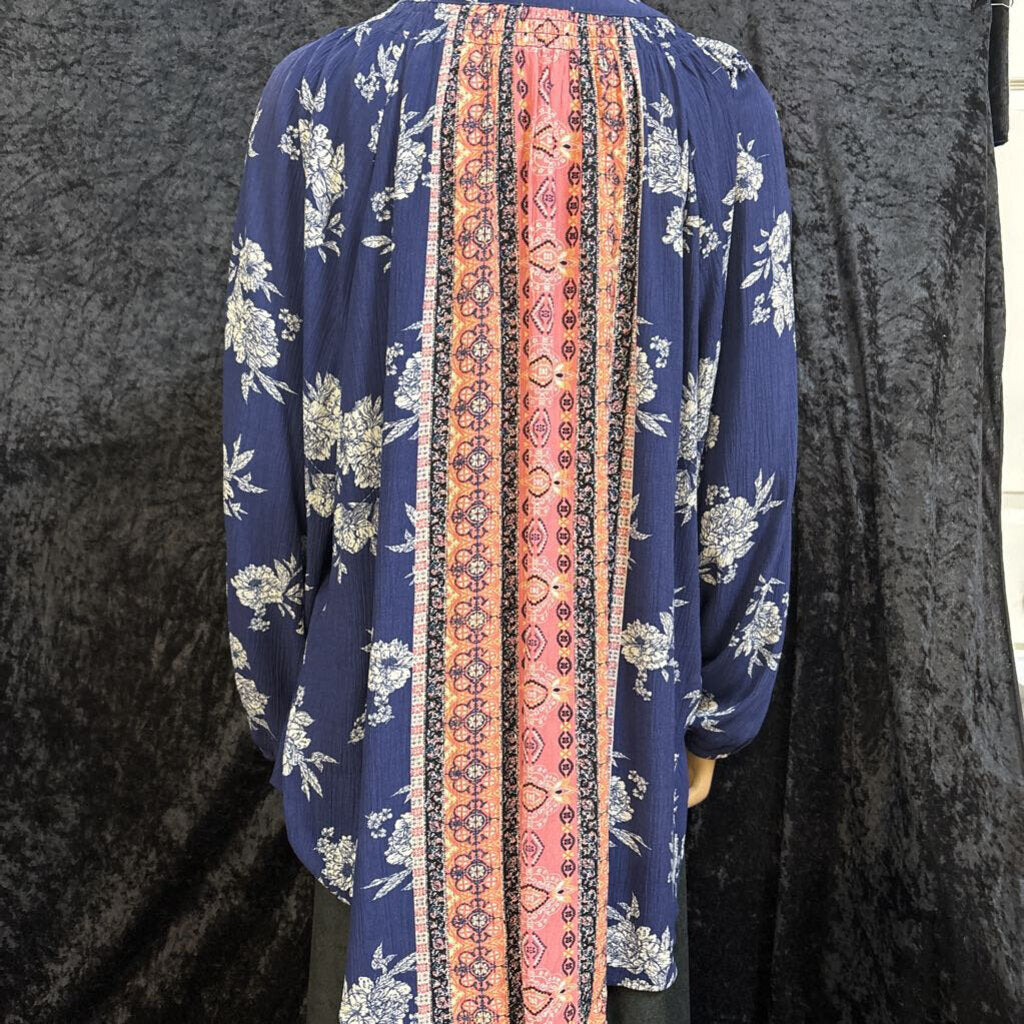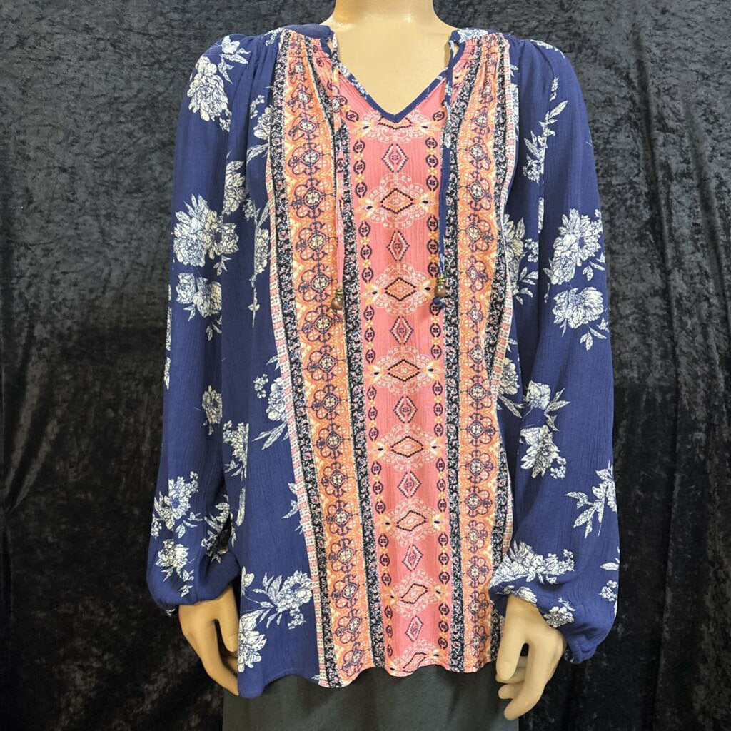 mason & belle long sleeve flowered with tassel tie Women's Shirts XXL navy, white, pink