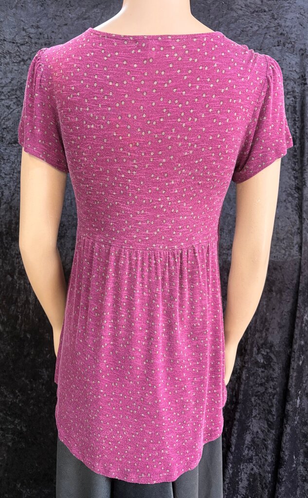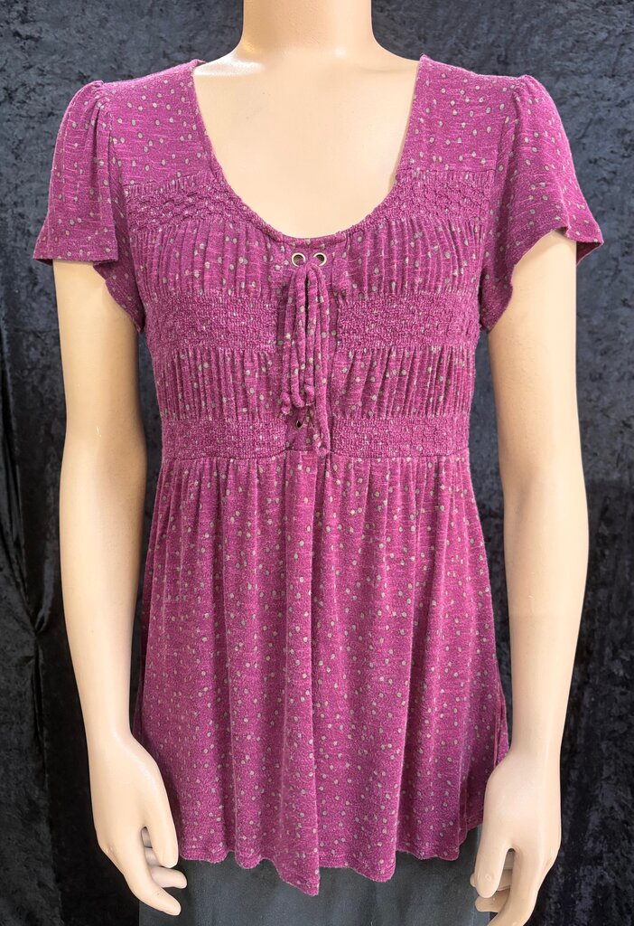 A stylish purple top by Maurices with a dotted design, perfect for casual wear or dressing up. Features a flattering fit and comfortable fabric.