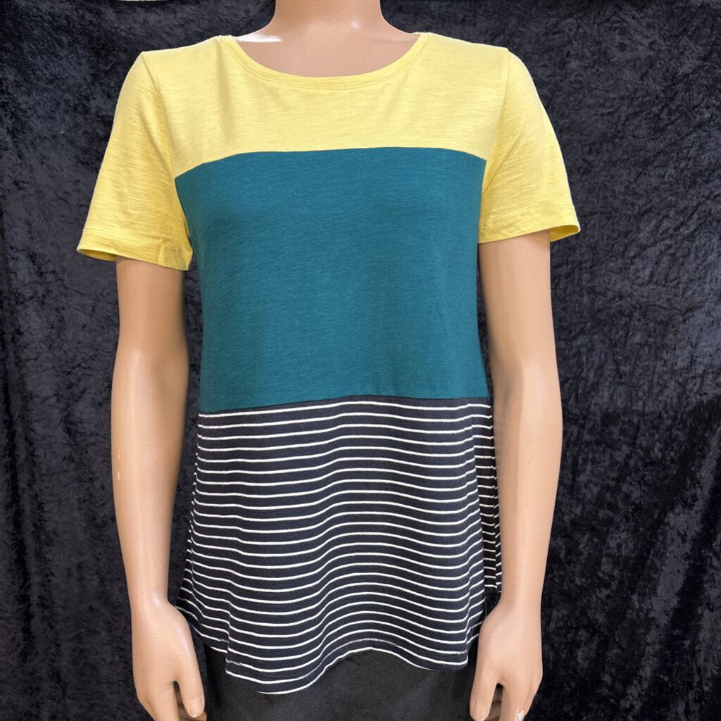 maurices Scoop neck tee striped bottom Women's Shirts S Green, yellow, black & white