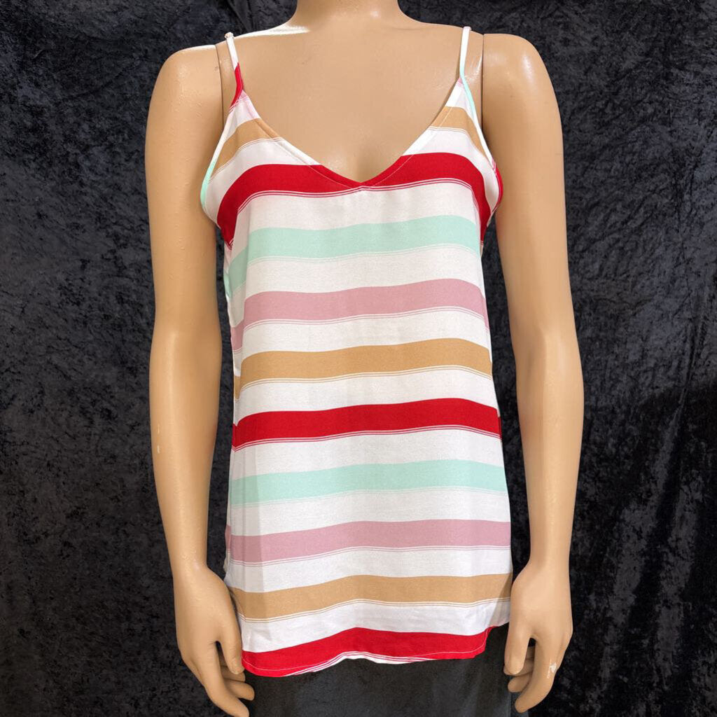 maurices Striped double v neck cami Women's Shirts S Red, white, mint, pink, tan