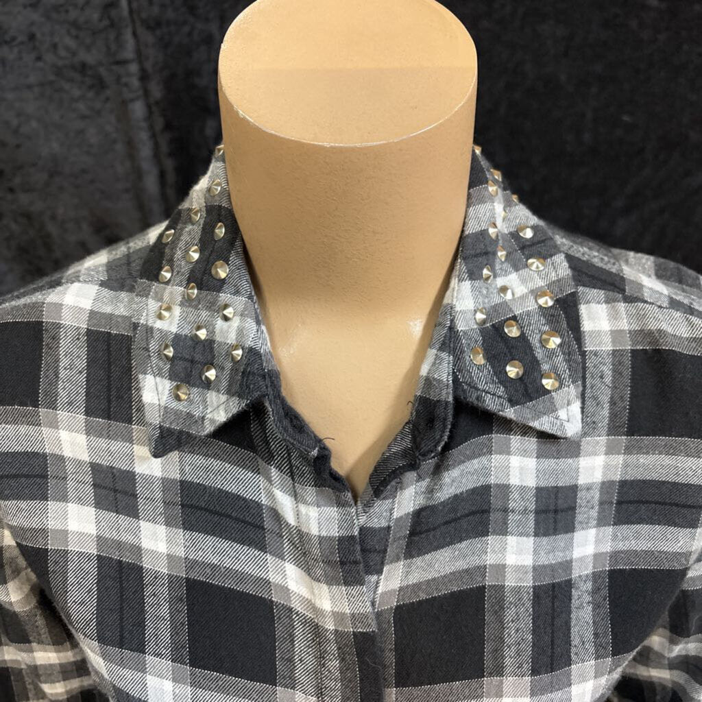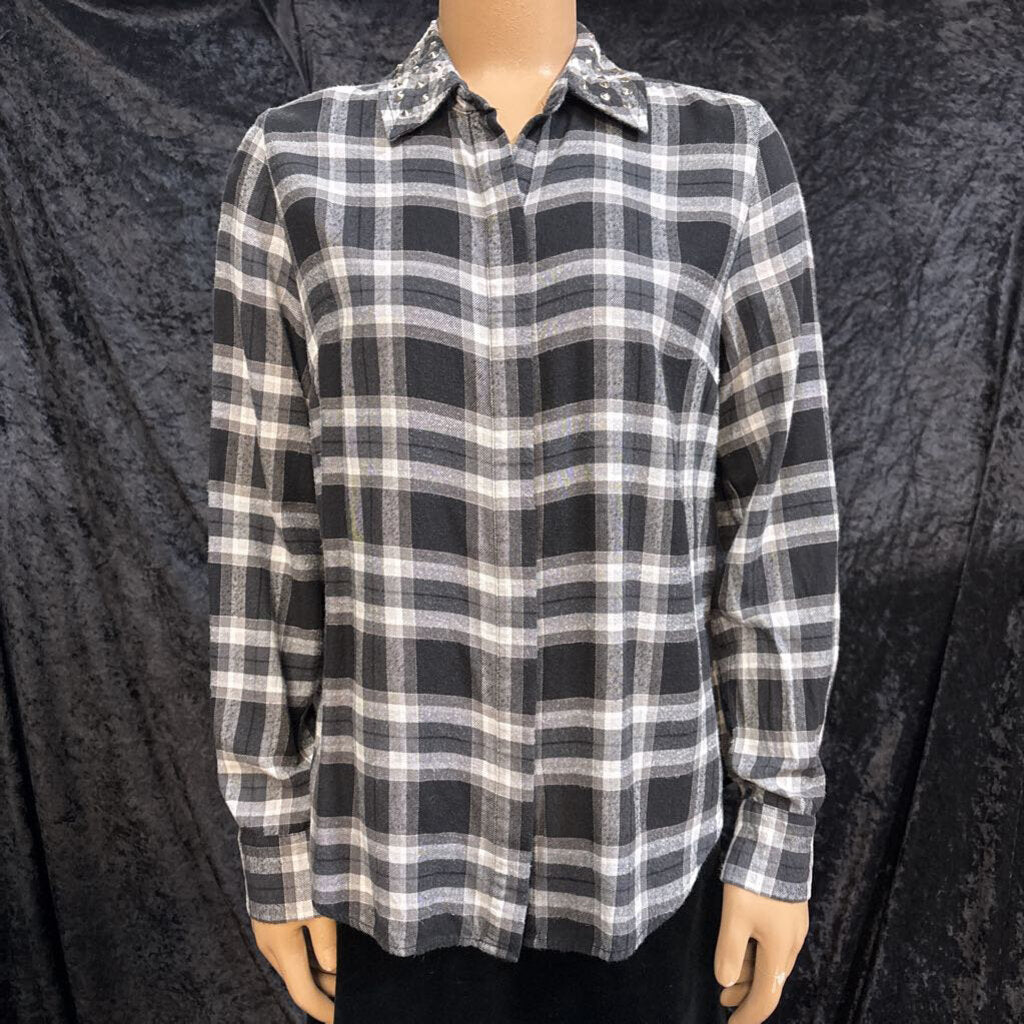 Michael Kors Plaid Flannel Button Up With Rimstones Women's Shirts M Green/Black