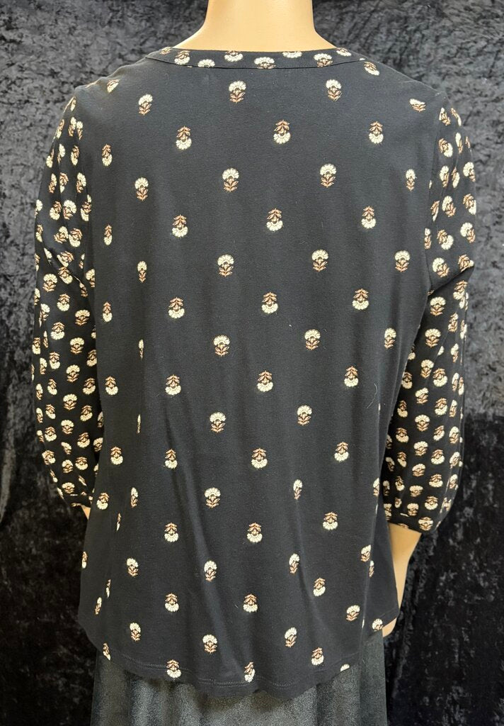 pure jill V-Neck Floral Quarter Sleeve Women's Shirts M Green