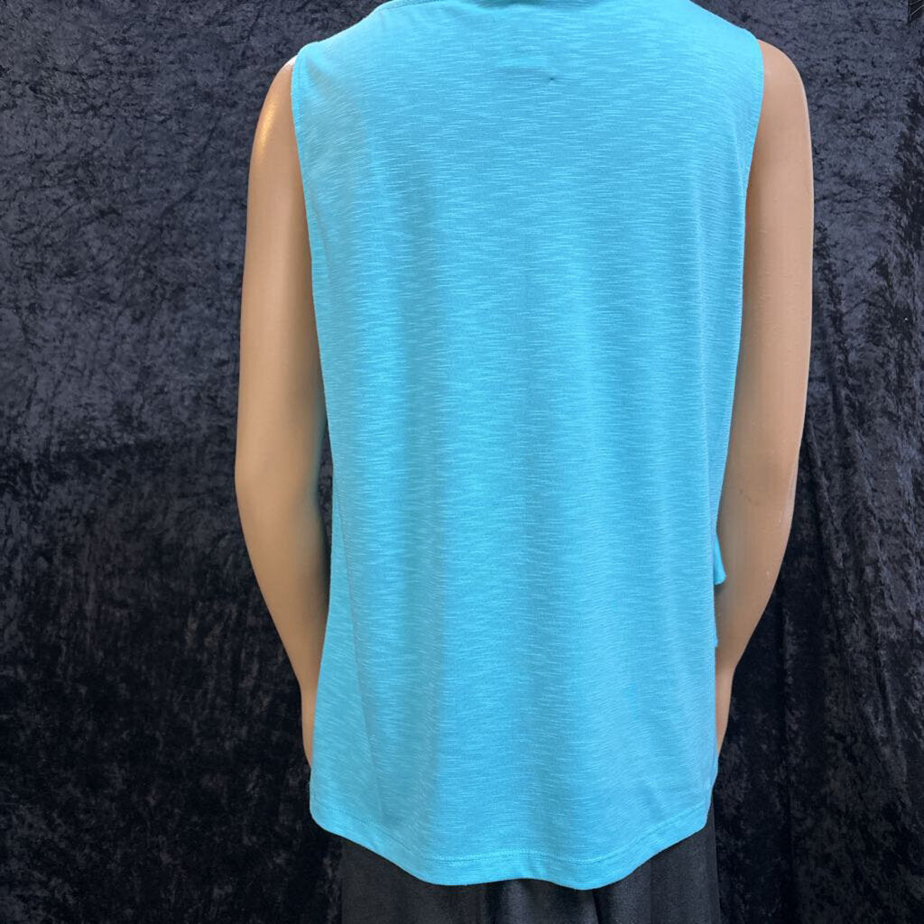 rafaella Sleeveless Ruffle Front Women's Shirts Large Blue