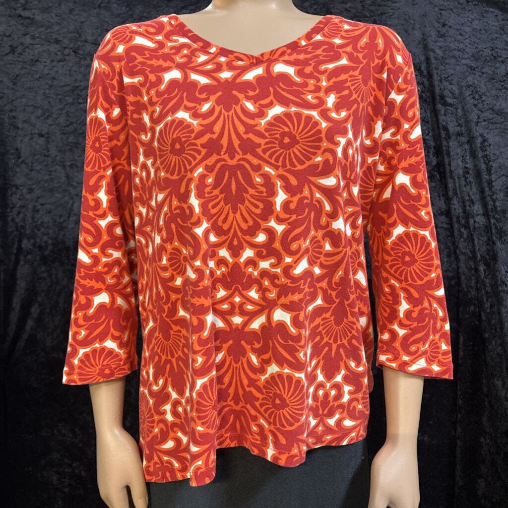 st johns bay 3/4 Sleeve Patterned Women's Shirts 1X Orange/White