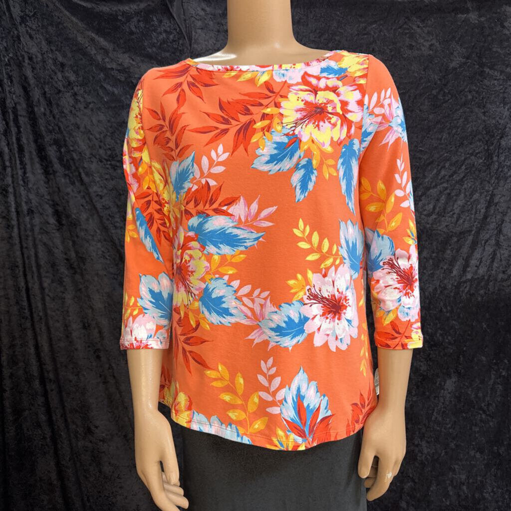 talbots 3/4 Sleeve Floral Women's Shirts 2X Petite Orange/Multi