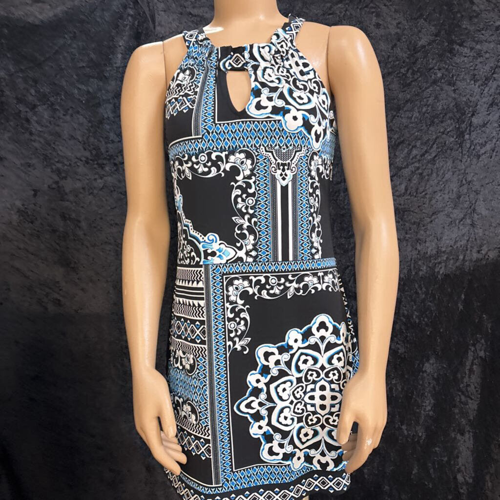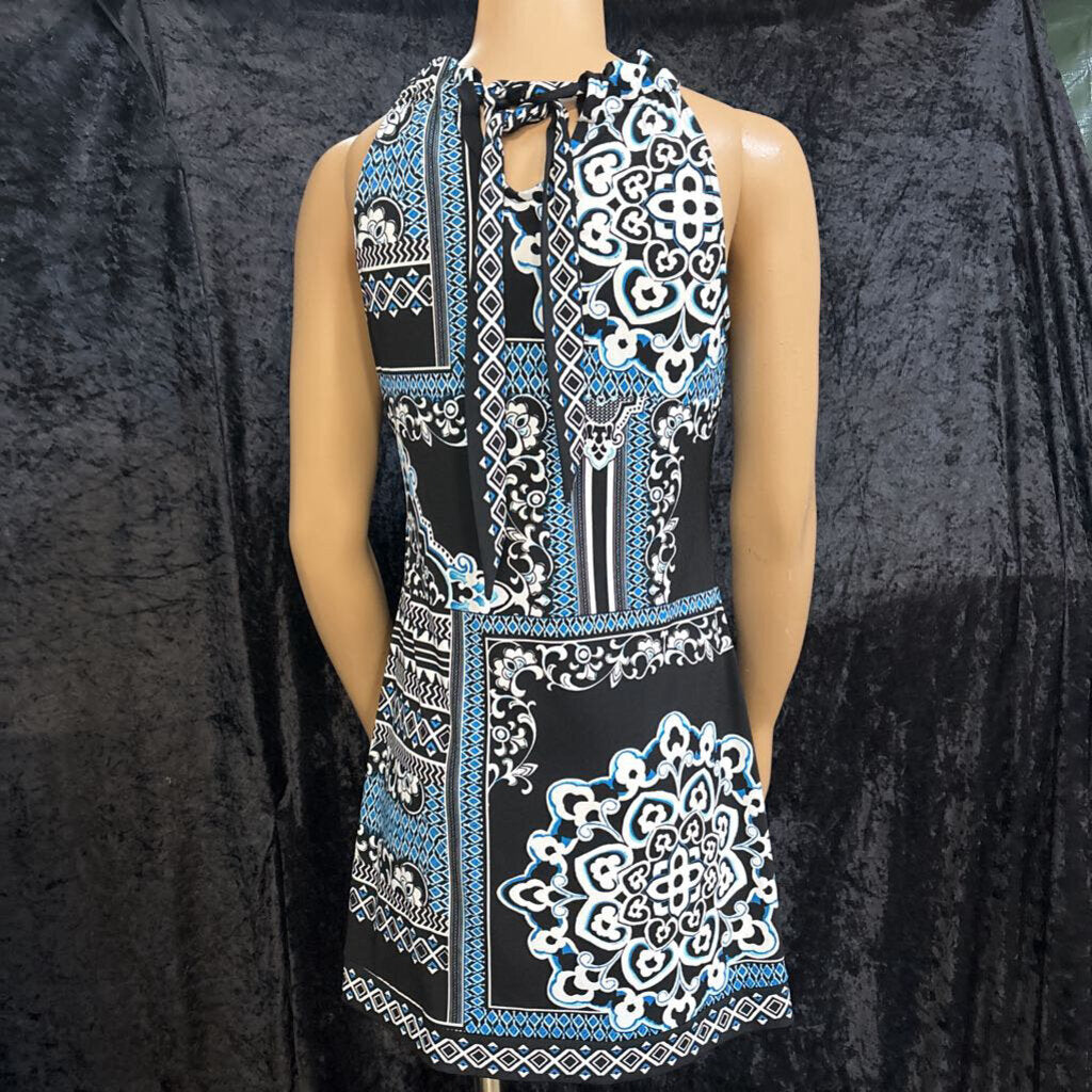 white house black market Halter Neck Tie Back Women's Shirts Small Blue/Black/White