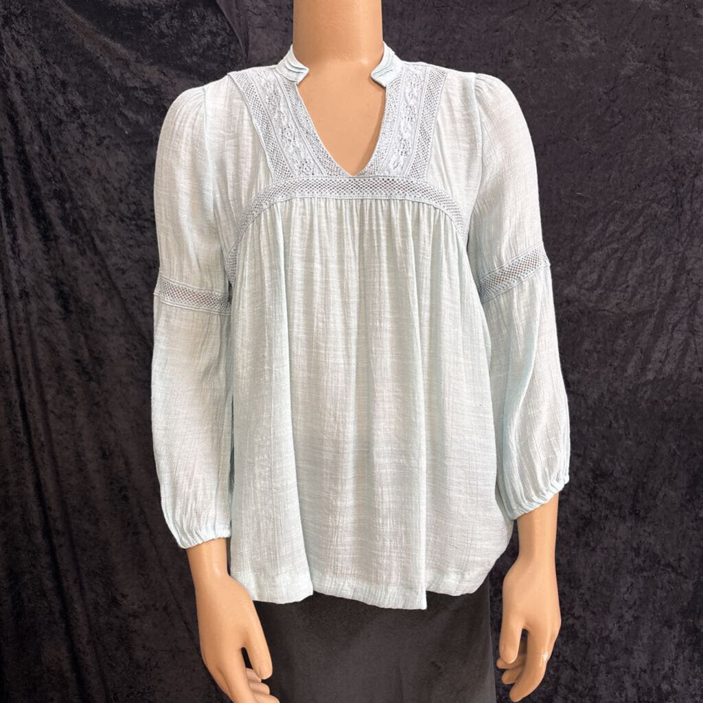 zac & rachel V-Neck Quarter Sleeve Women's Shirts S Blue