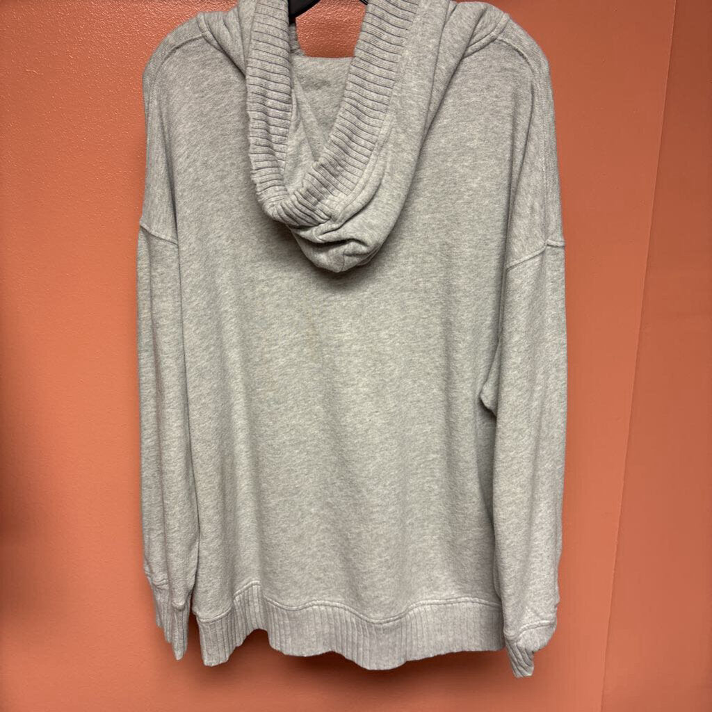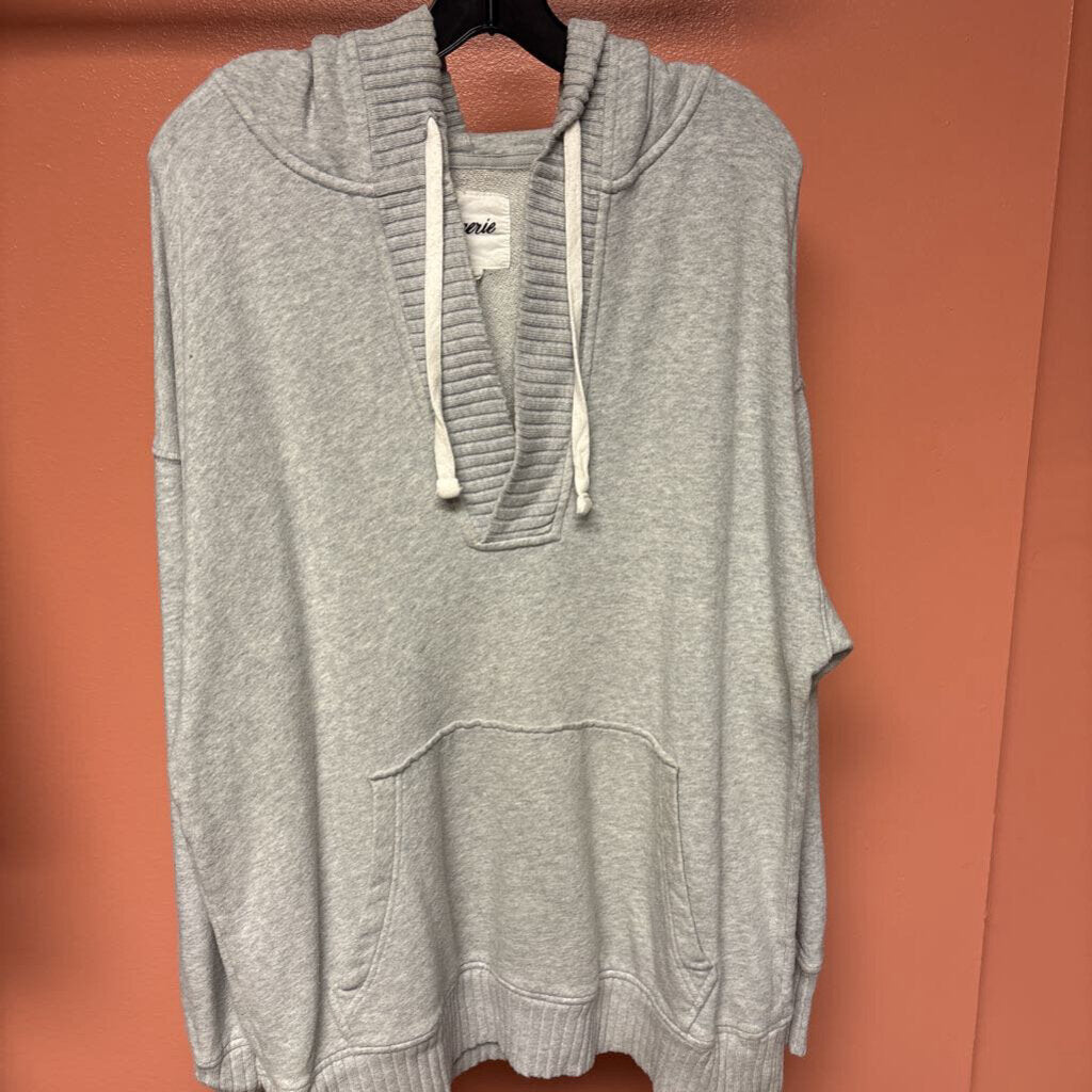 This hooded sweatshirt features a deep vneck with drawstrings. It has an oversized fit. The material is comfortable for daily, casual wear.