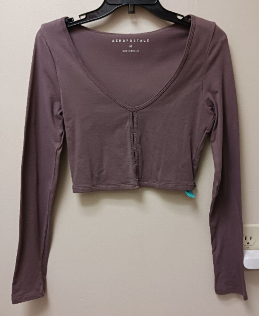 Aeropostale Cropped long sleeve v-neck Women's Shirts Med brown