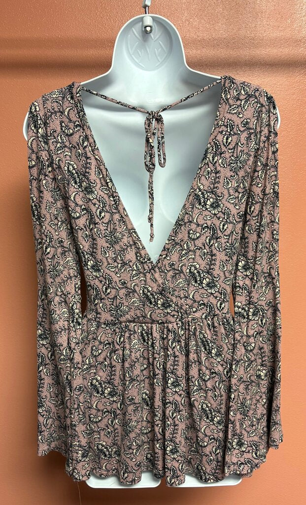American Eagle Floral Print Bell Sleeve Top Women's Shirts small lilac/black